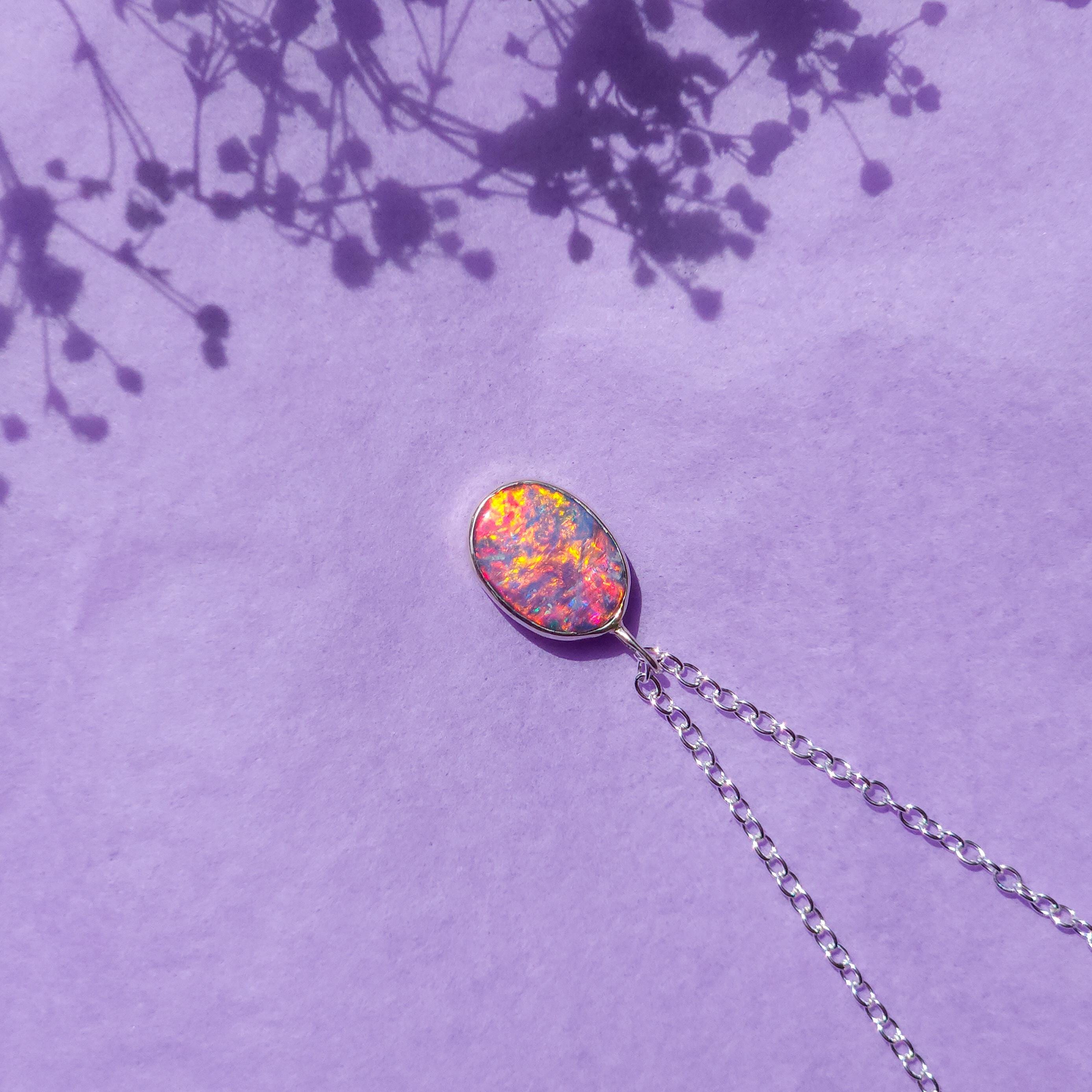 Mintabie 14K Rose Gold doublet pendant/ Australian opal necklace / pink Mintabie opal / minimal jewelry