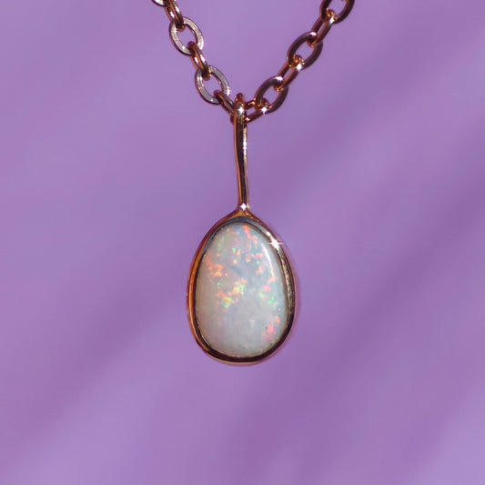 Mintabie 14K Rose Gold doublet pendant/ Australian opal necklace / pink Mintabie opal / minimal jewelry