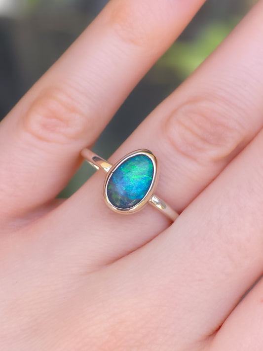 DELILAH | 14K Gold Australian opal doublet ring / Free Sizing / Coober Pedy Opal / solid gold / Rainbow opal /statement ring