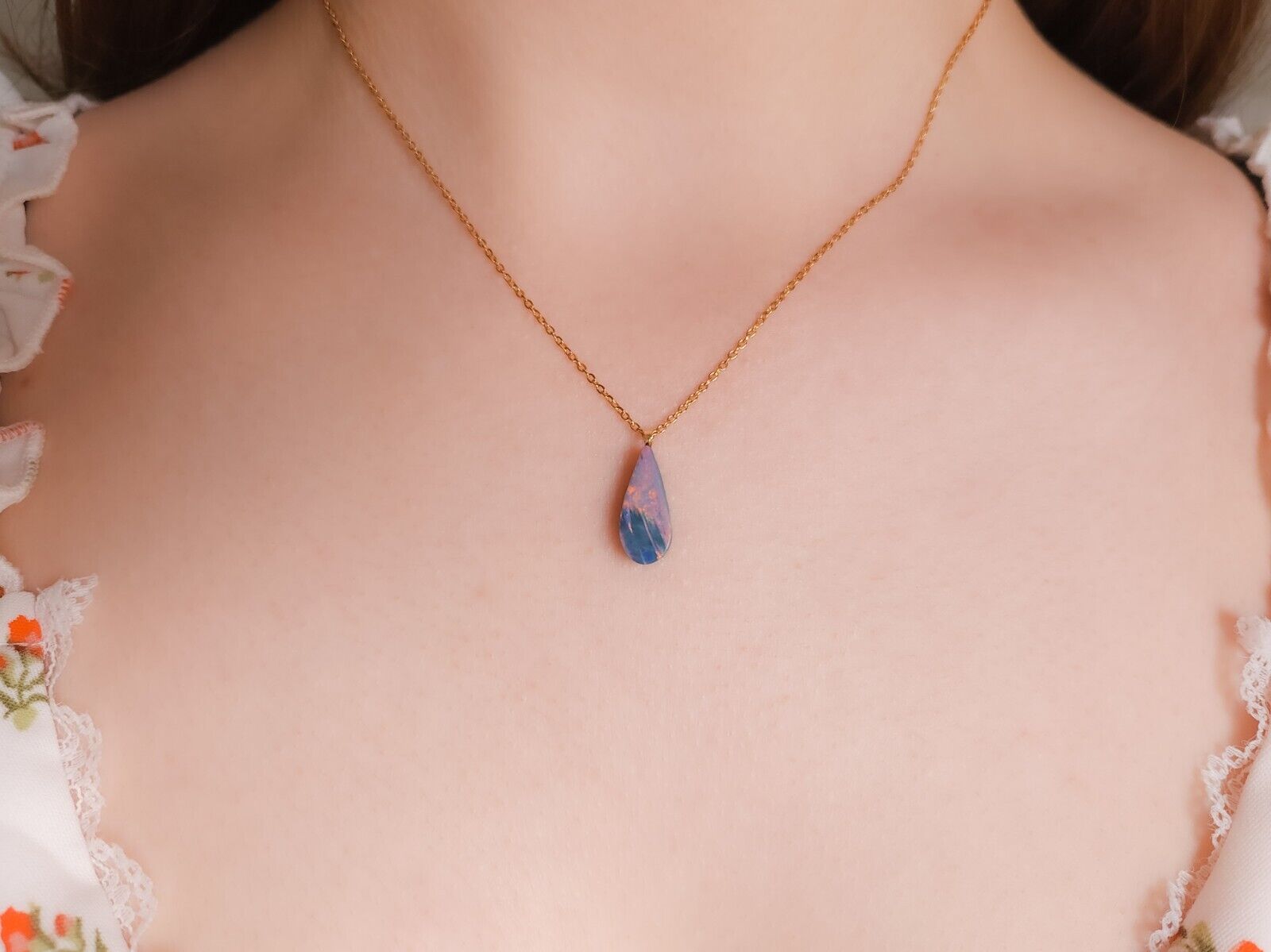 CAMELLIA | 14K Gold Coober Pedy opal doublet/ Australian opal necklace/ firey opal/ crystal opal/ minimalist jewelry/ Pink opal
