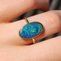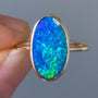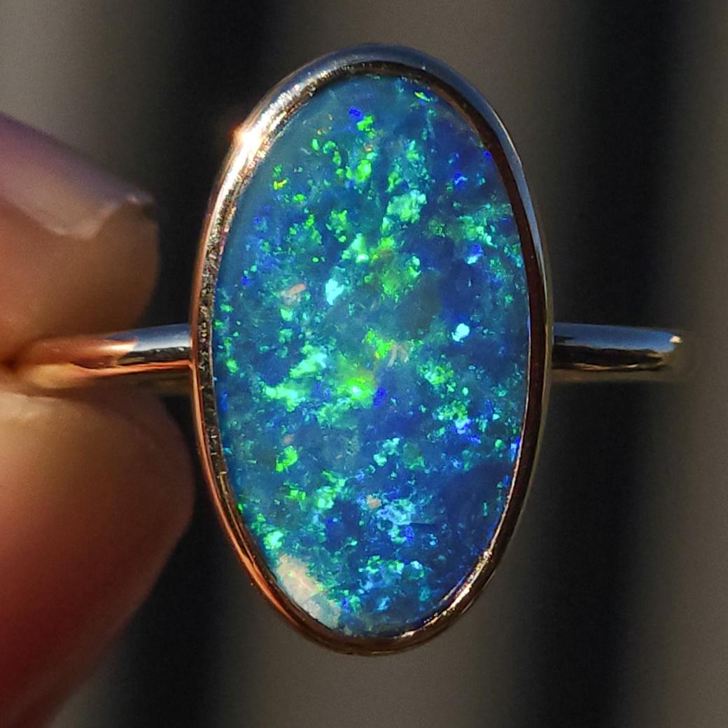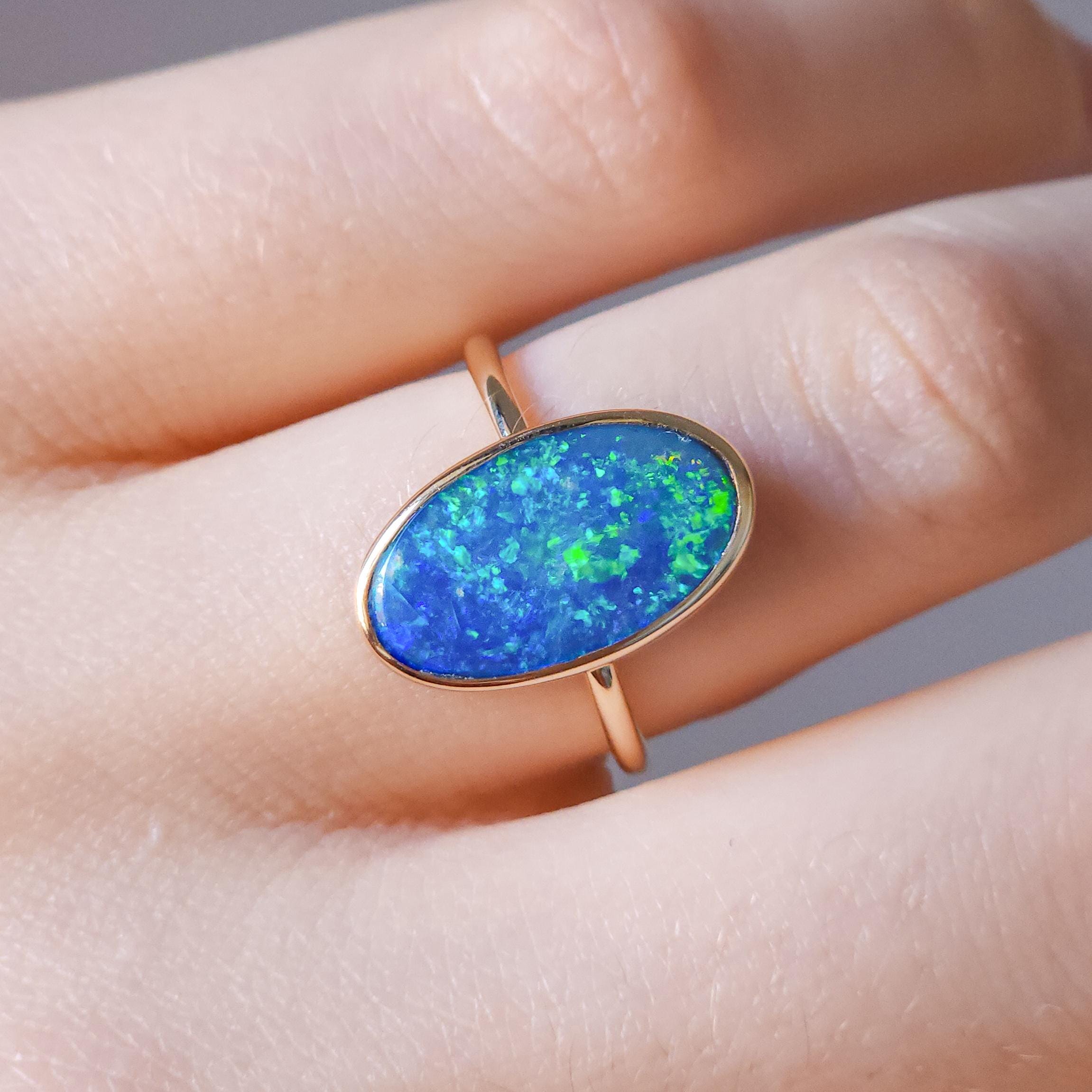 14K Gold Australian opal ring / Free Resize / Coober Pedy crystal opal doublet / statement ring/ solid gold