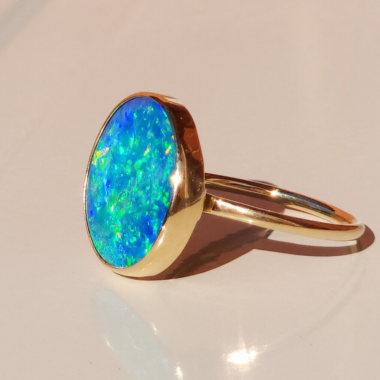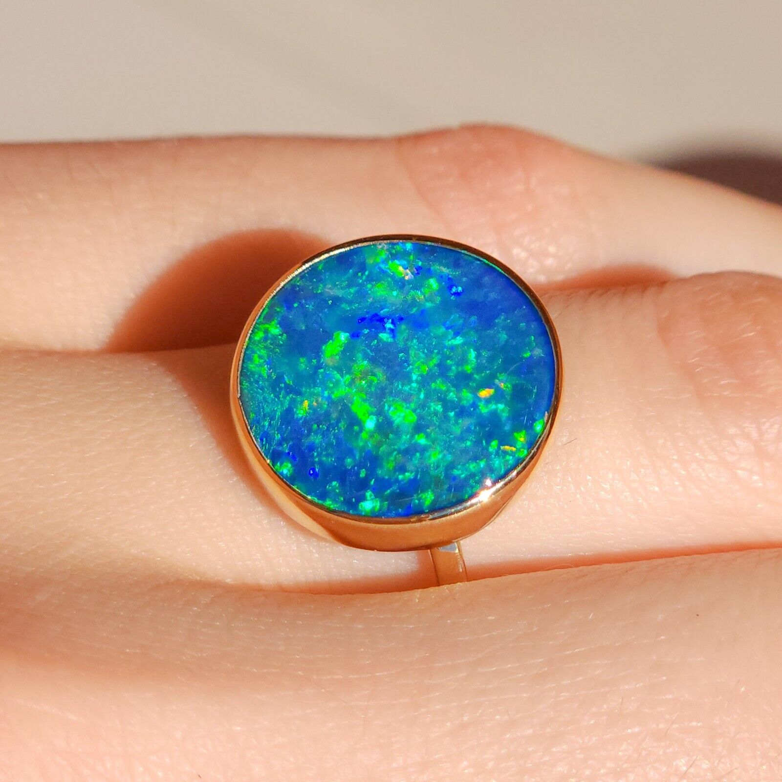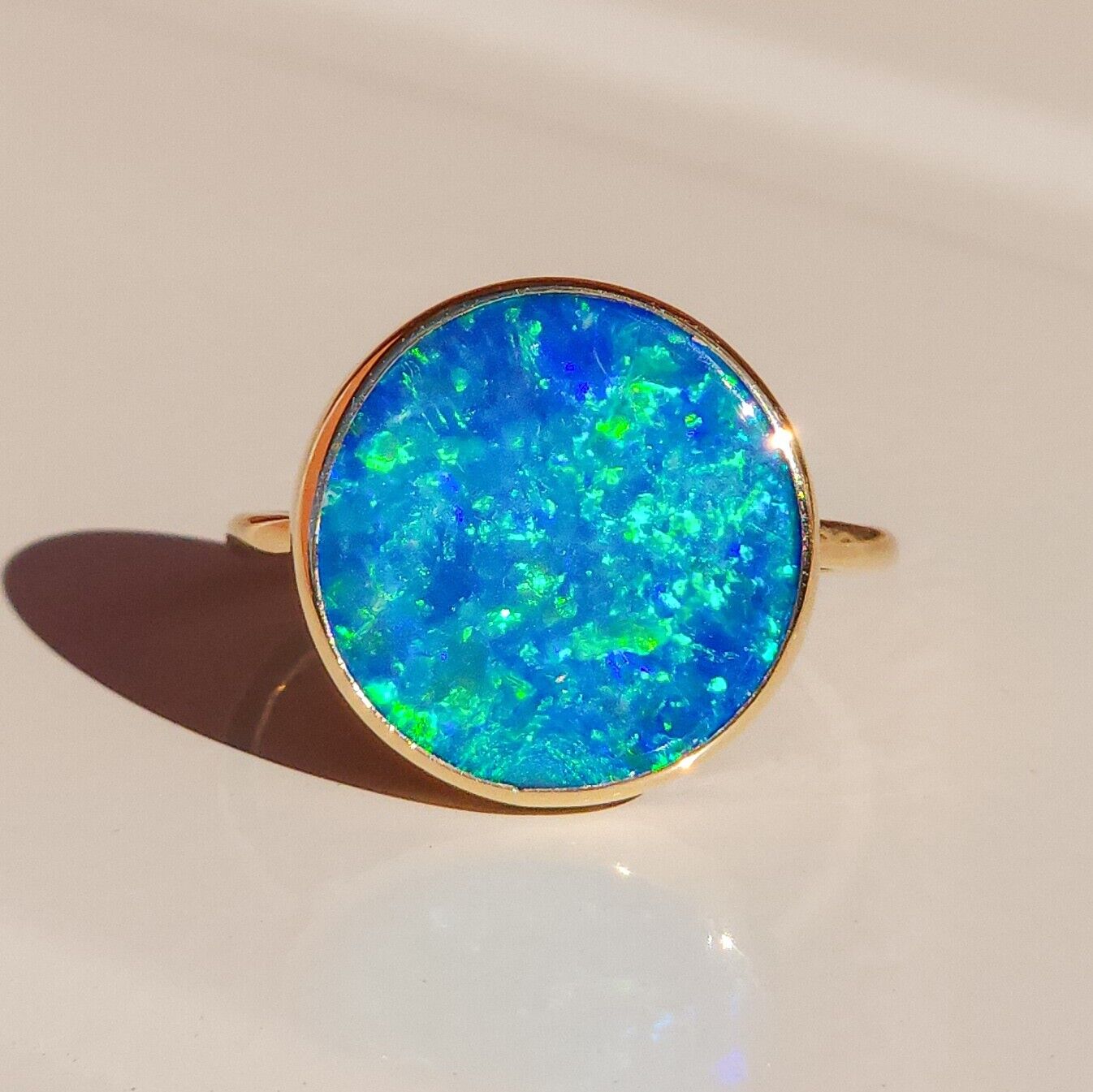 14K Gold Australian opal ring / SIZE 8 / Coober Pedy opal doublet / statement ring/ Solid gold