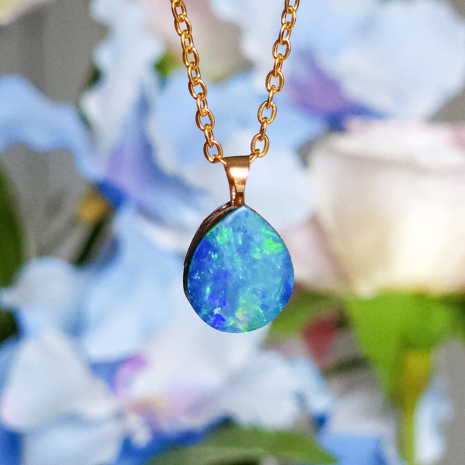 PRINCESS | Gold 14K Bail, Australian Coober Pedy Opal Doublet Pendant, QLD Boulder Ironstone Backing
