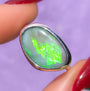 Australian Mintabie opal doublet ring / Free Sizing / 925 solid silver / minimal jewelry / flashy green