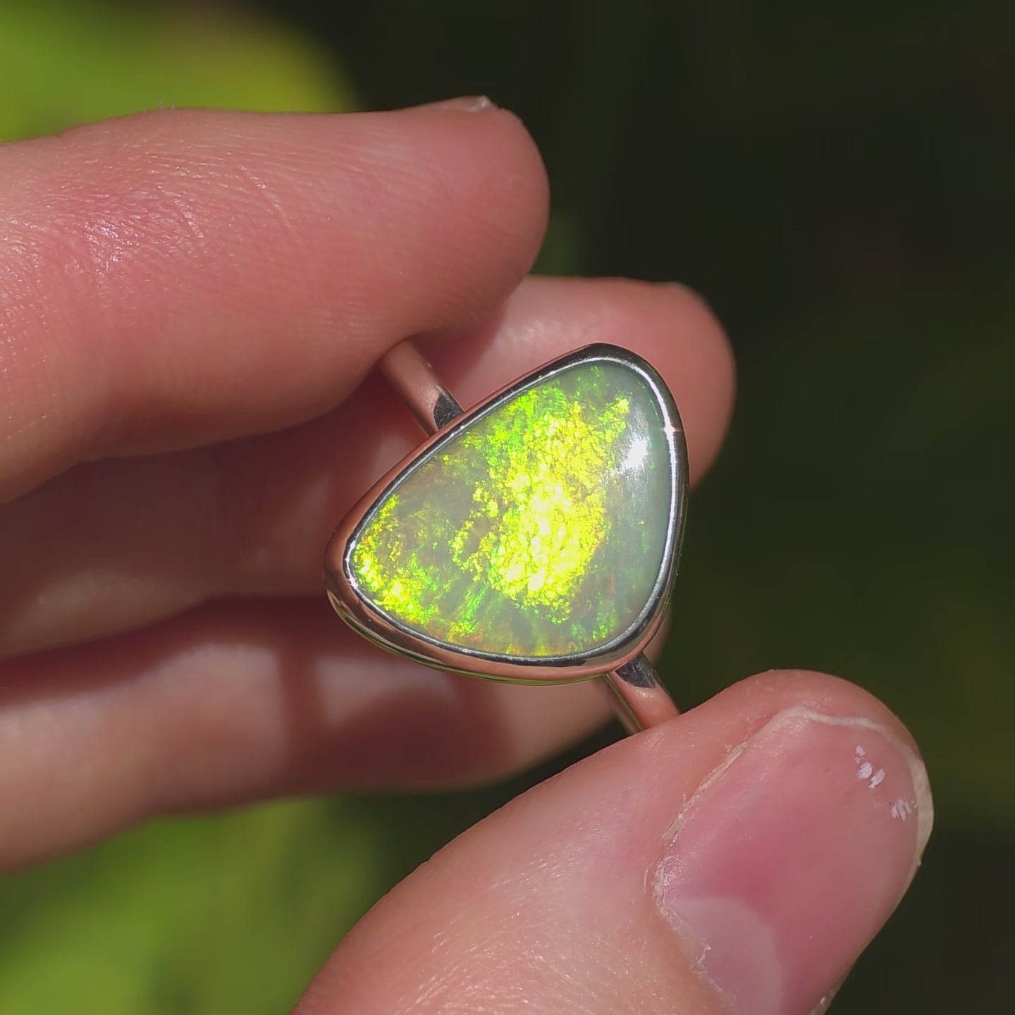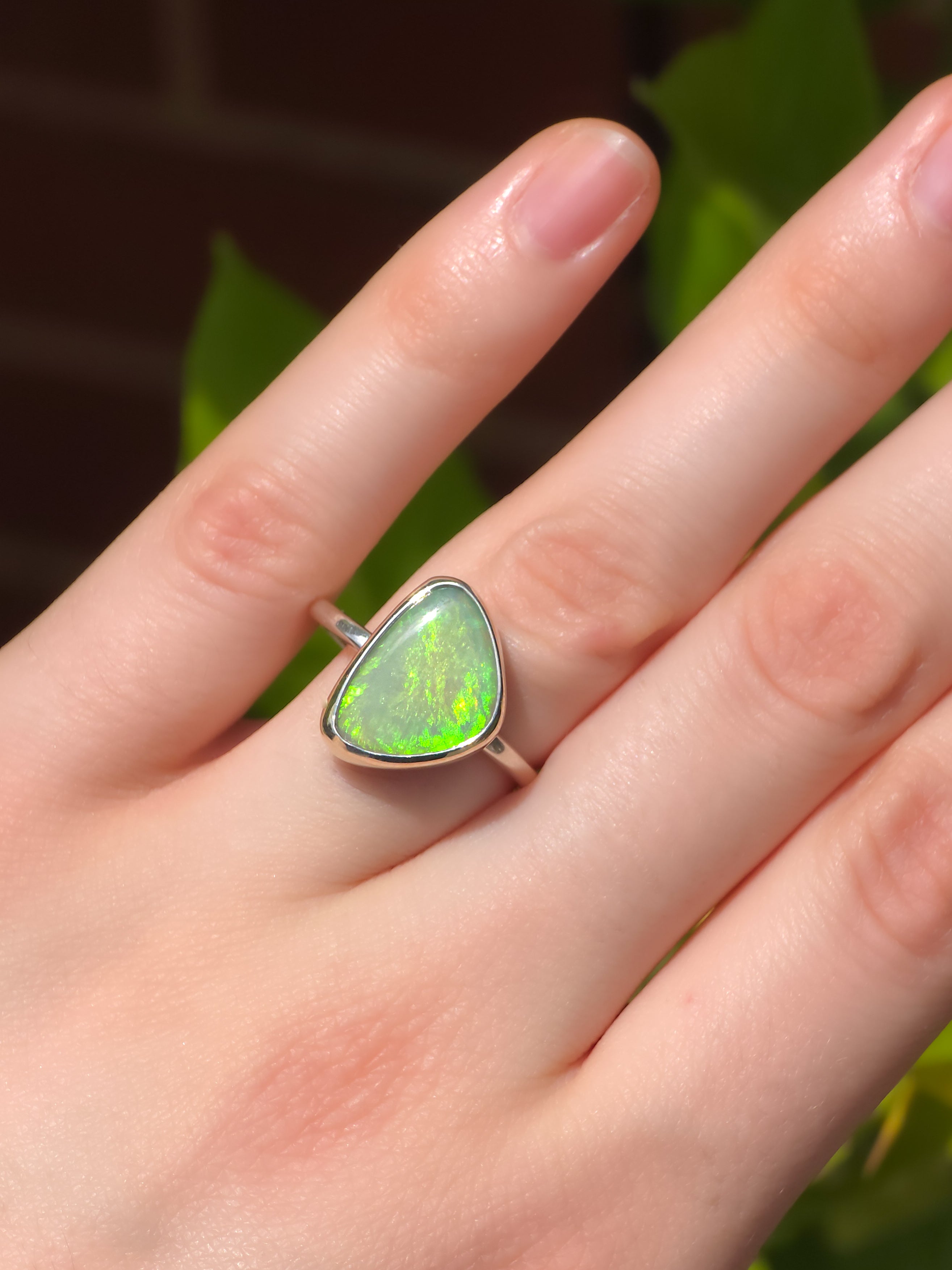 Australian Mintabie opal doublet ring / Free Sizing / 925 solid silver / minimal jewelry / flashy green