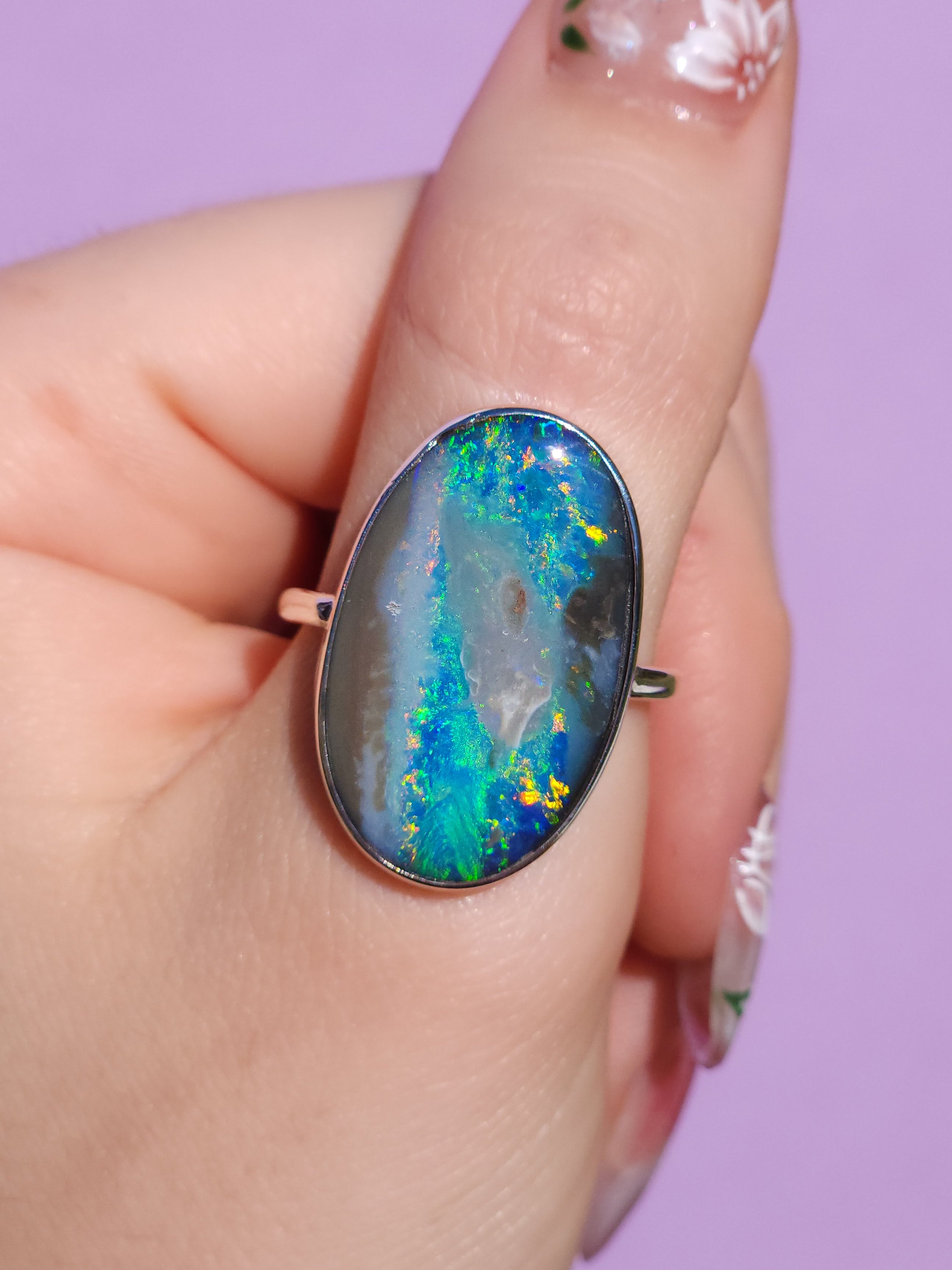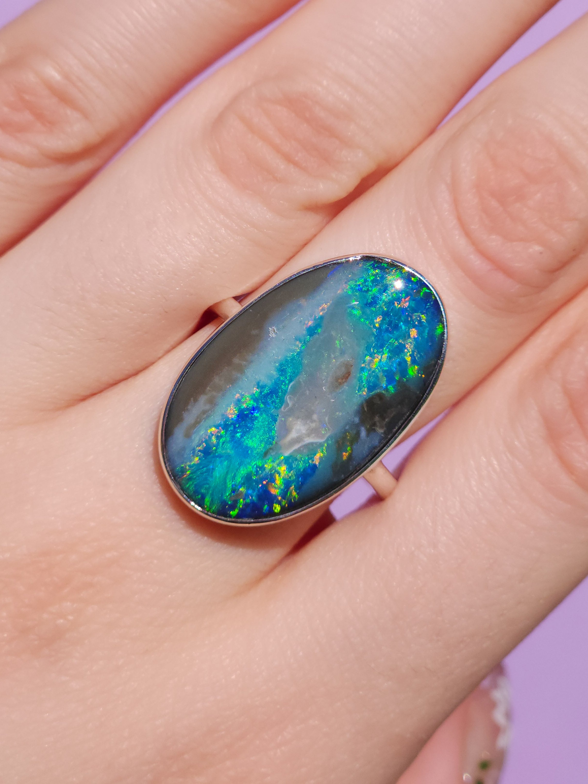 Australian opal doublet ring / Size 9 1/4 / Australian Crystal opal / Statement ring / Fine Jewelry