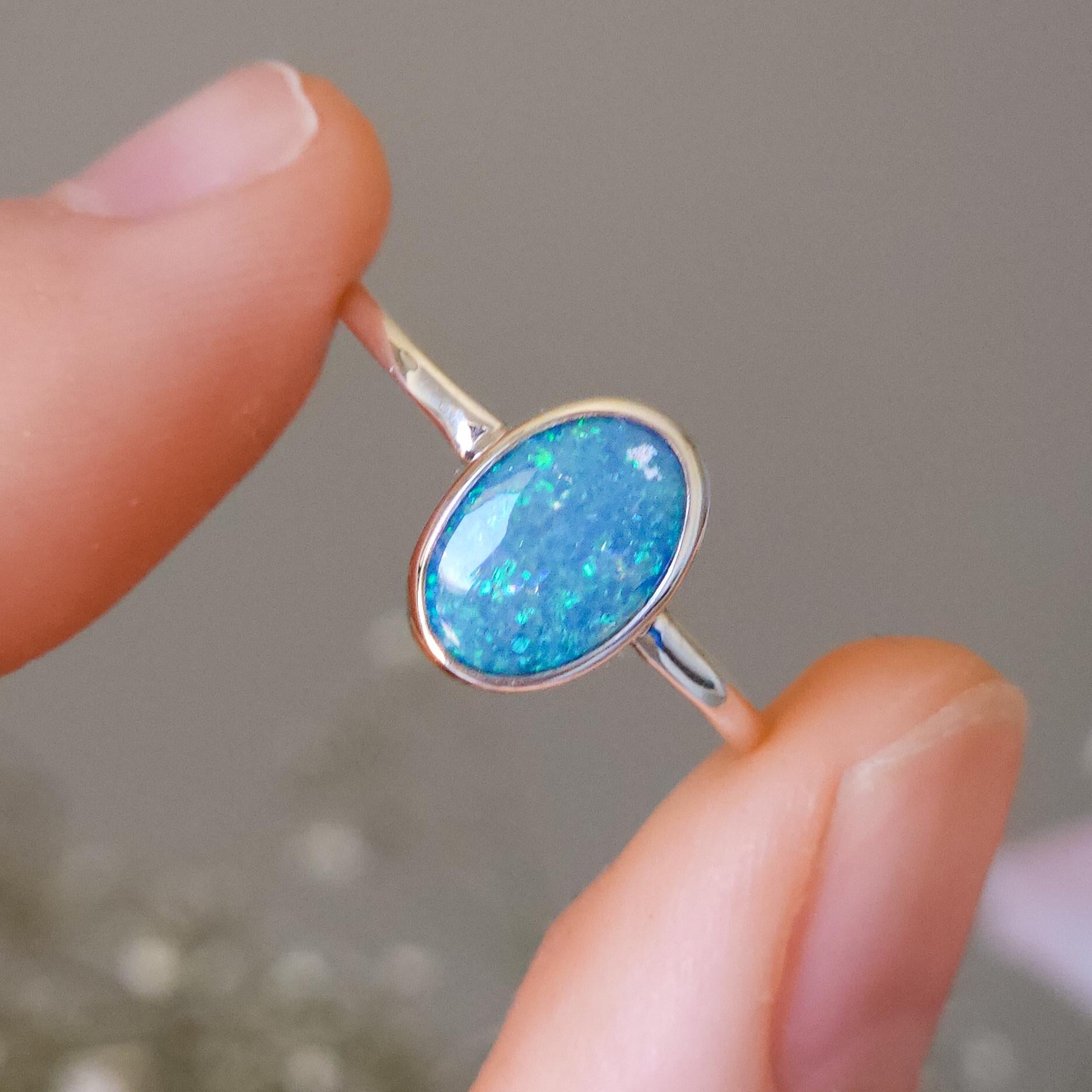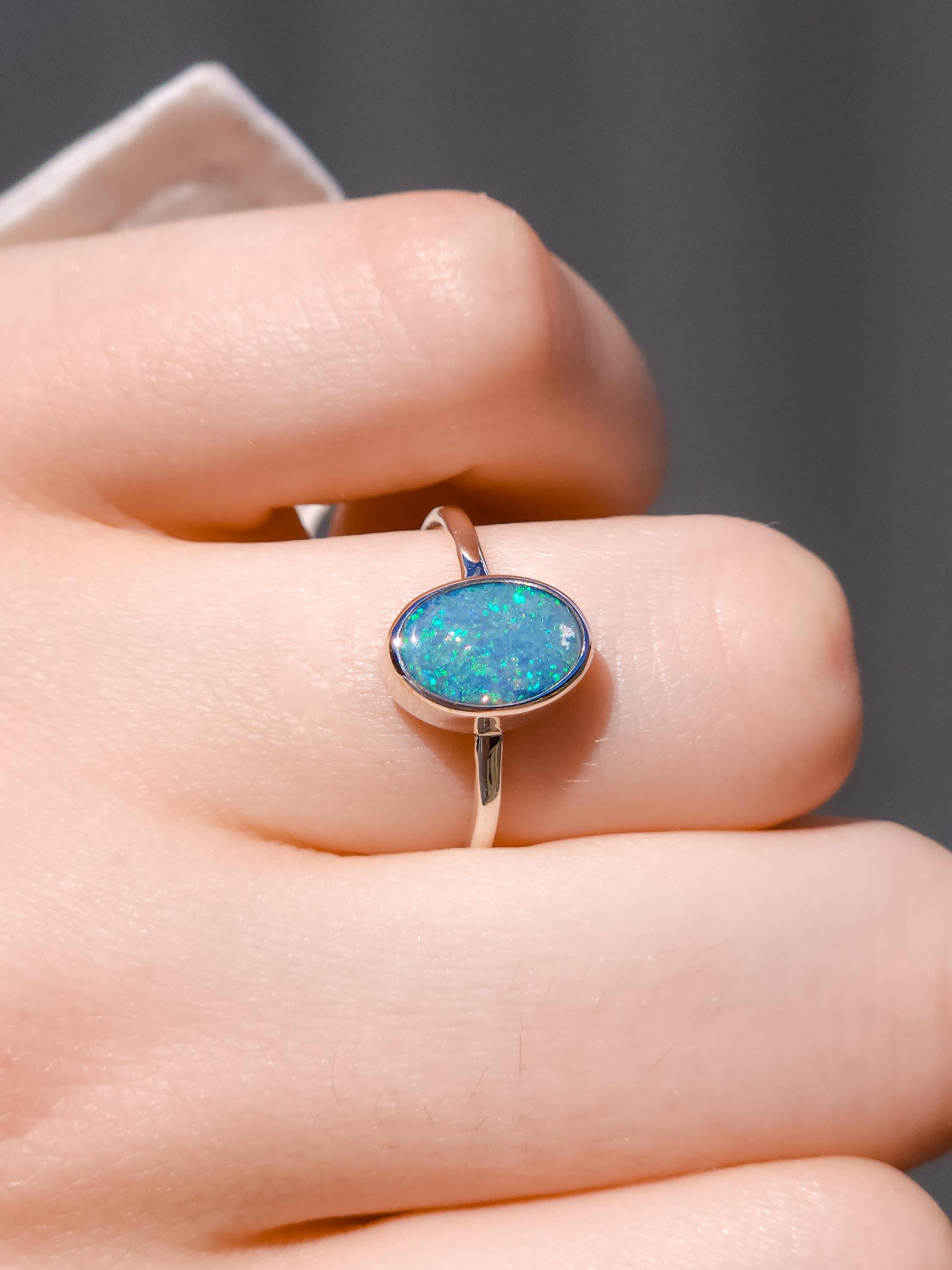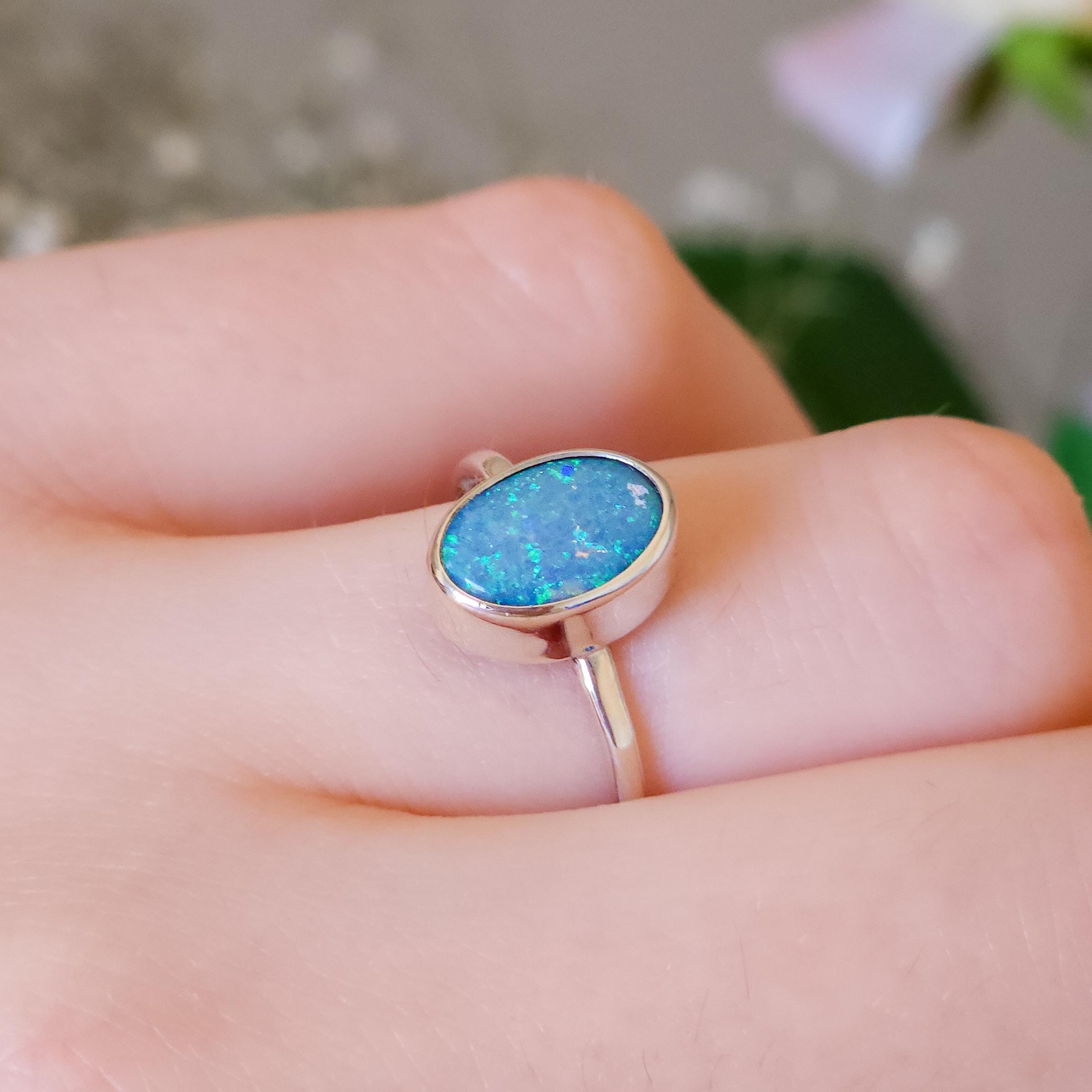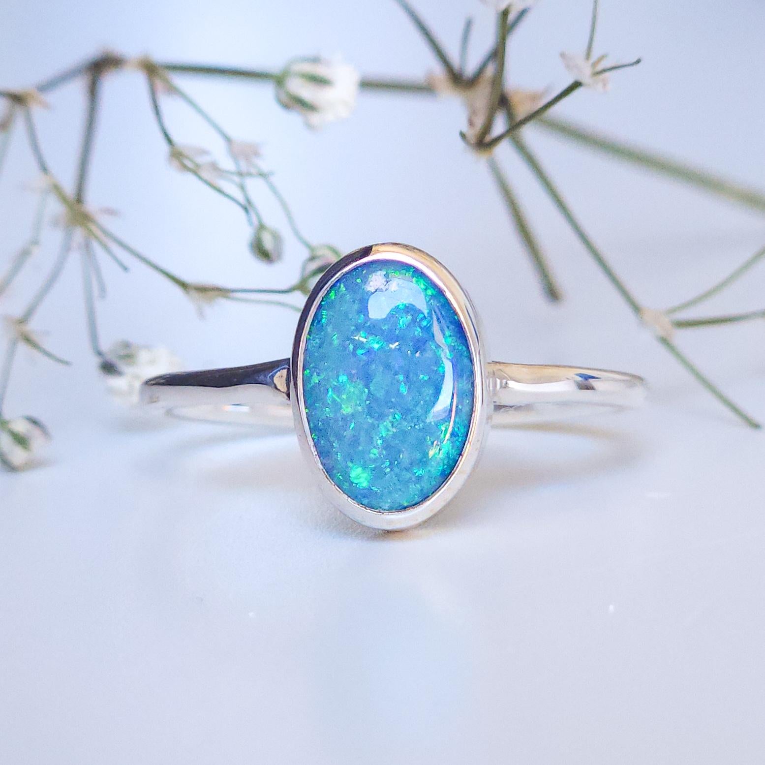 Australian opal doublet ring / Size US 7 3/4 / 925 silver/ minimal ring/ gemstone ring/ Coober Pedy opal/ crystal opal