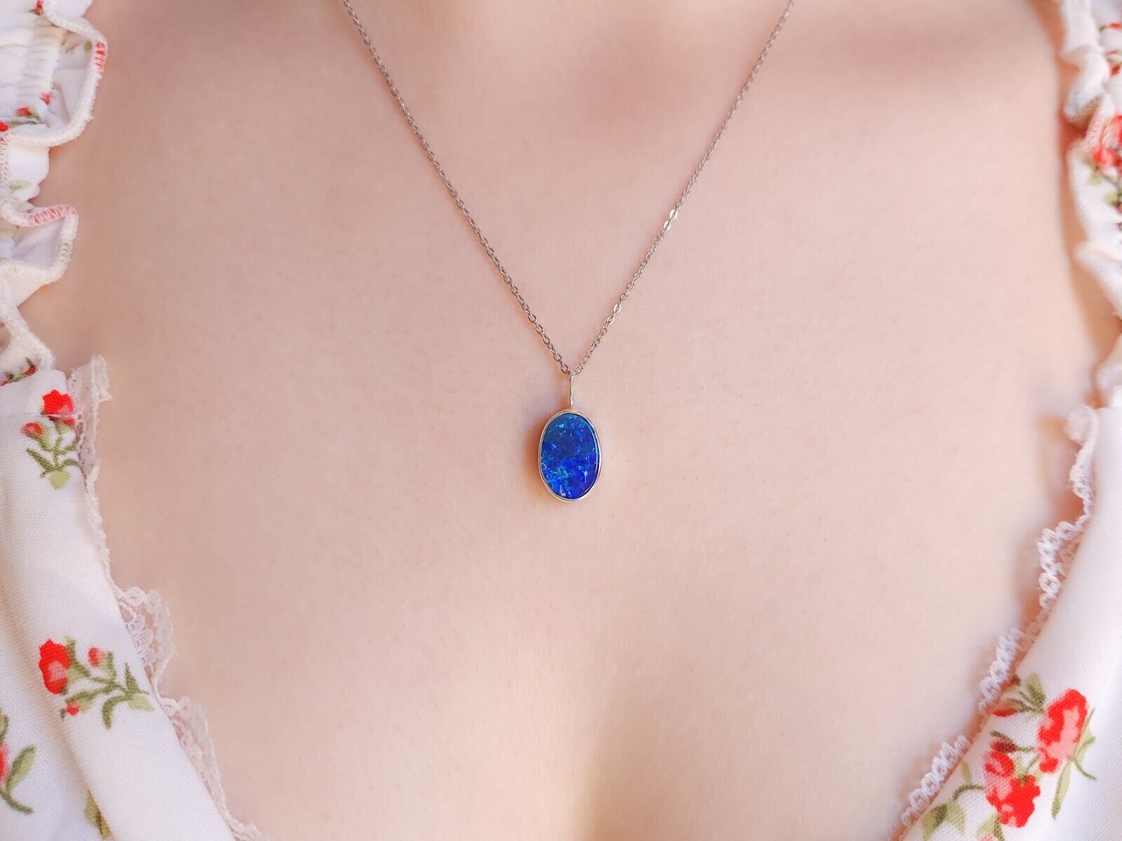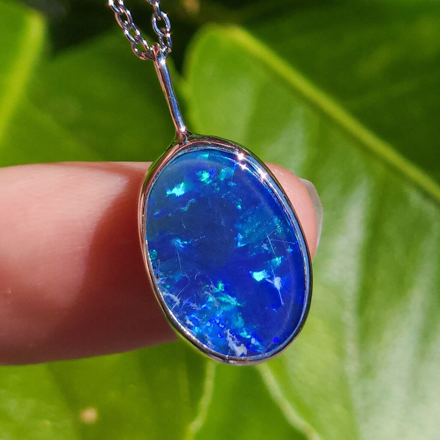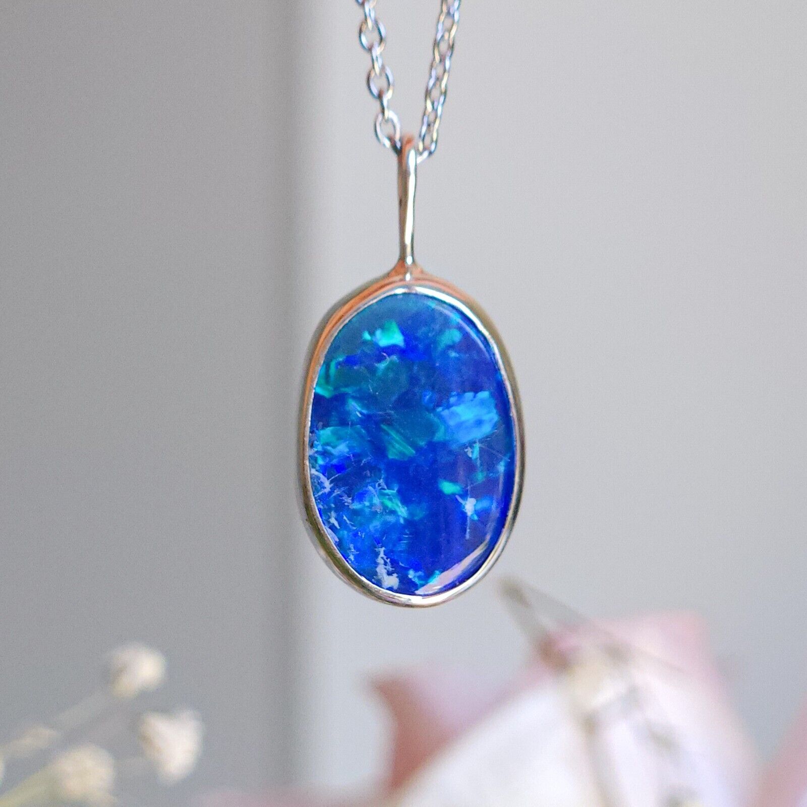 BLUE | Australian opal doublet pendant / Silver Opal necklace/ Coober Pedy/ statement pendant
