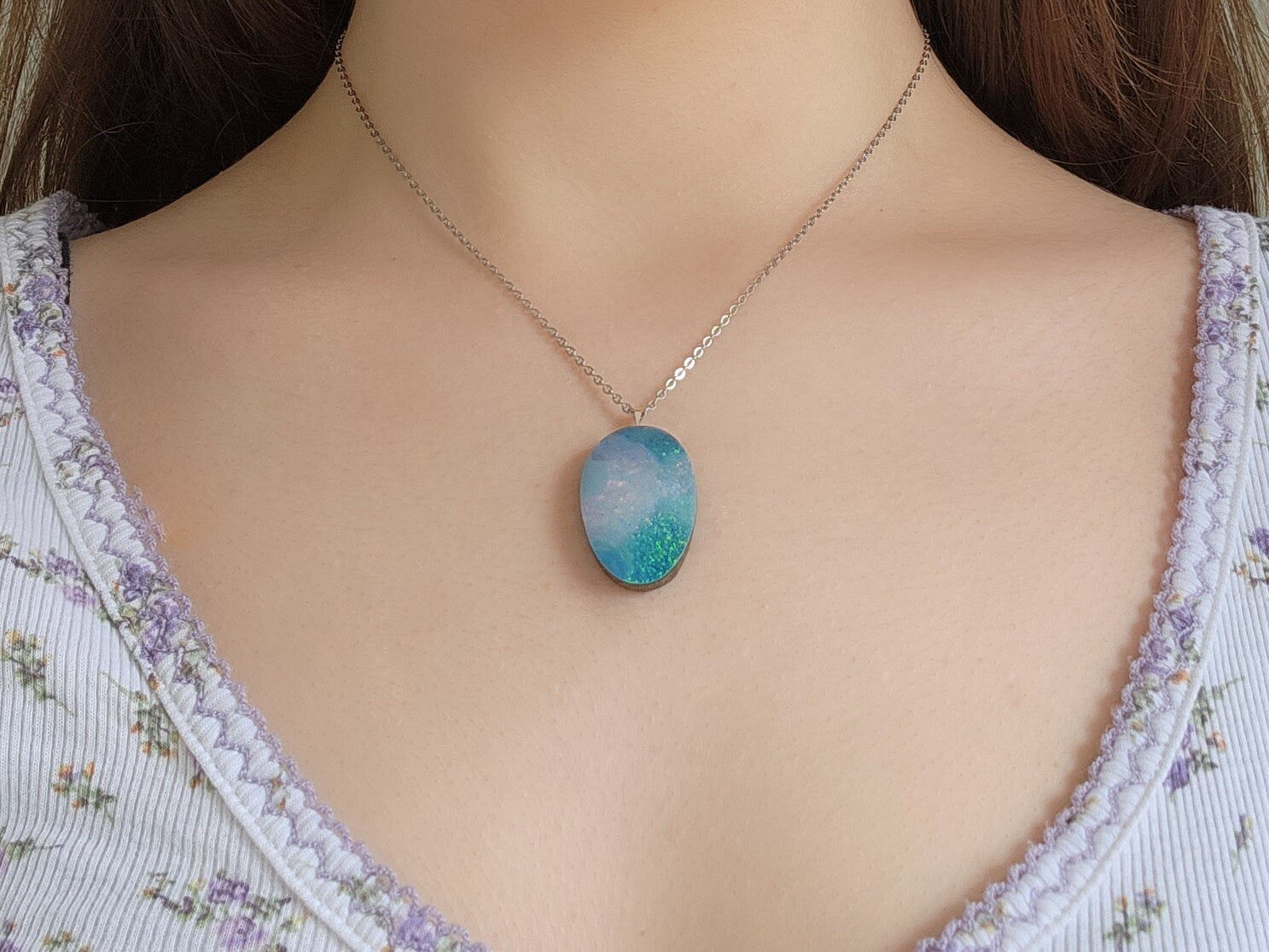 🌿29×19×5mm~ 🌿 Sterling Silver Bail~ 🌿16 inch Stainless Steel Necklace~