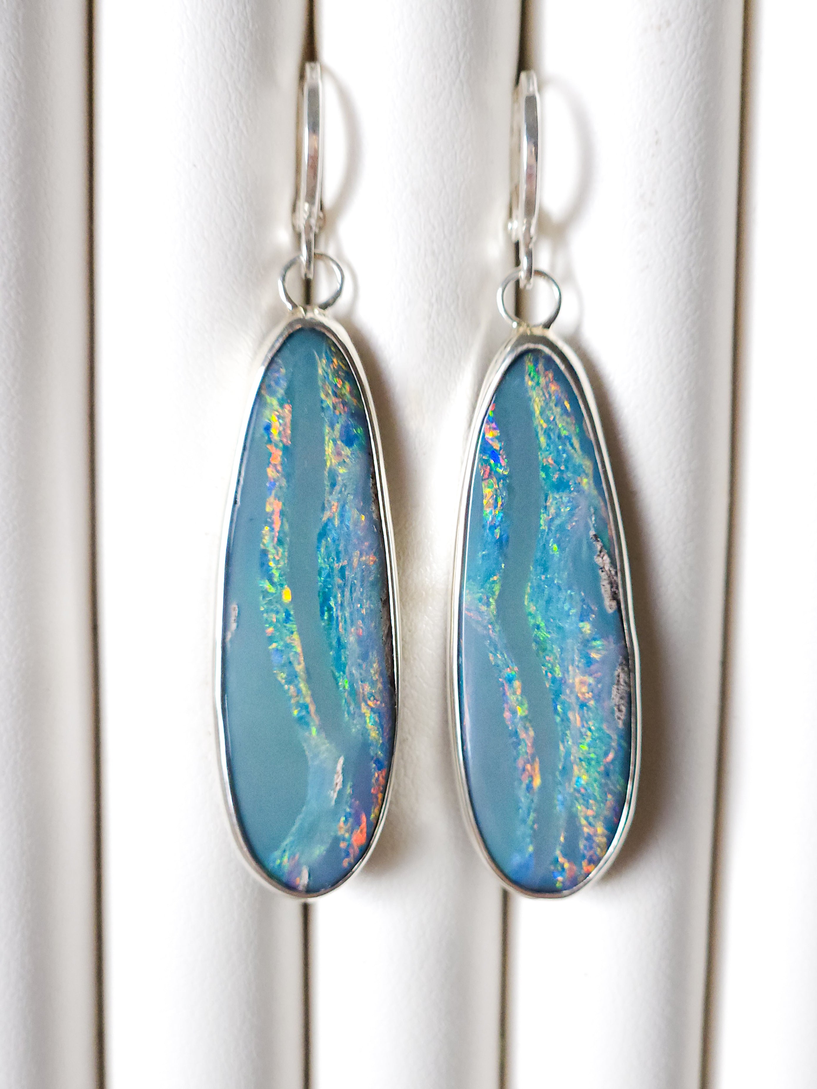BIFROST | Australian opal drop earrings / 925 silver / Coober Pedy opal doublet / statement earrings / rainbow opal earrings