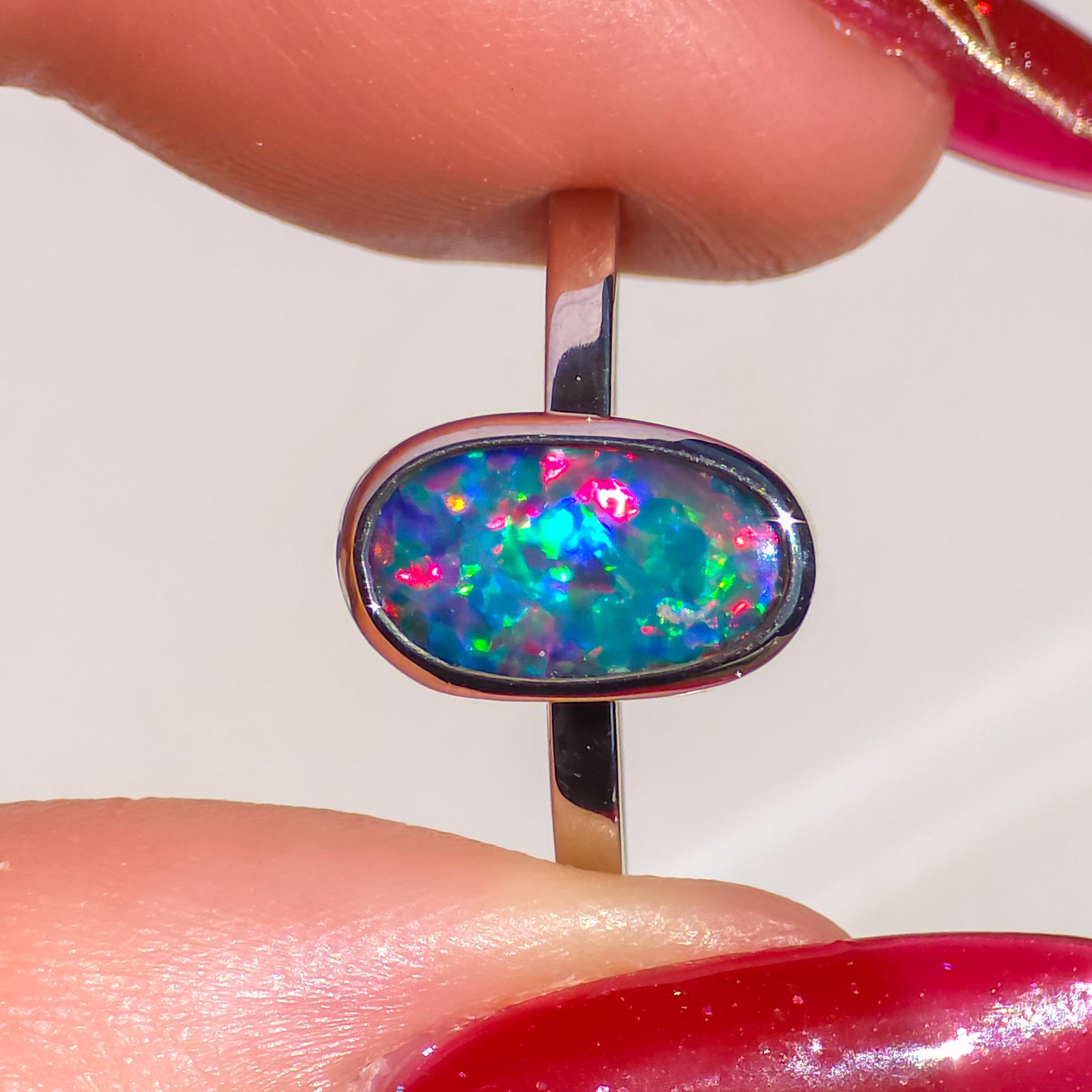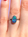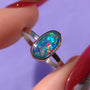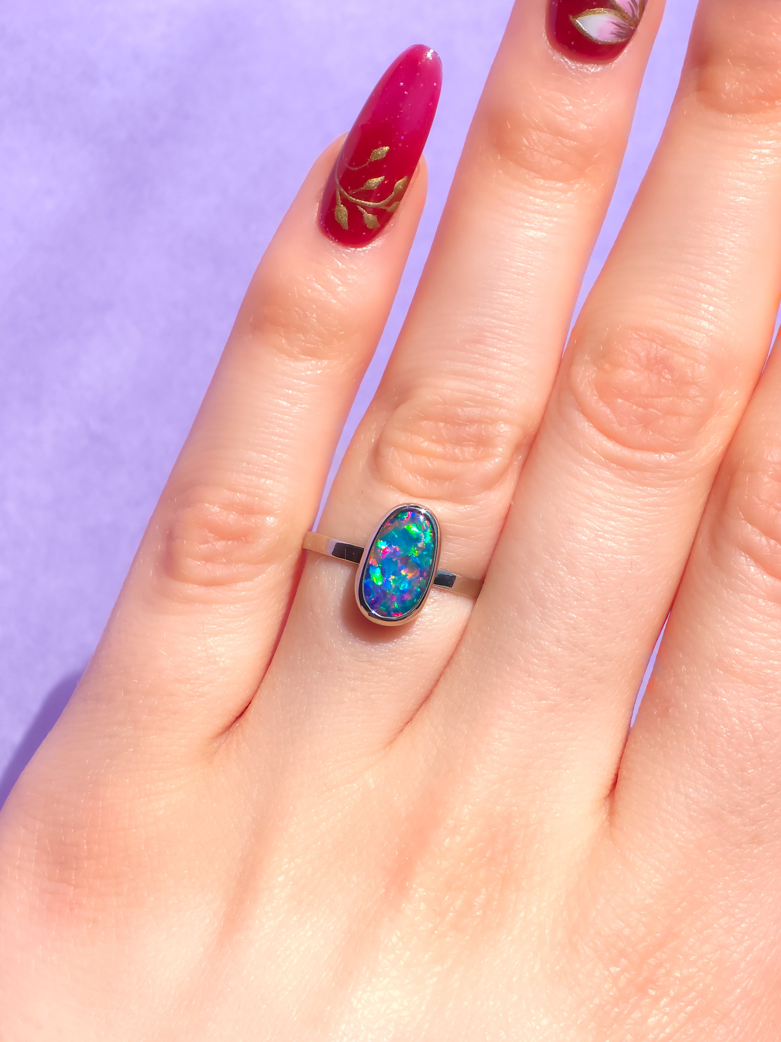 CORAL | 14K White Gold Australian opal doublet ring / Free Sizing / Coober Pedy Opal / solid gold / Rainbow opal /statement ring
