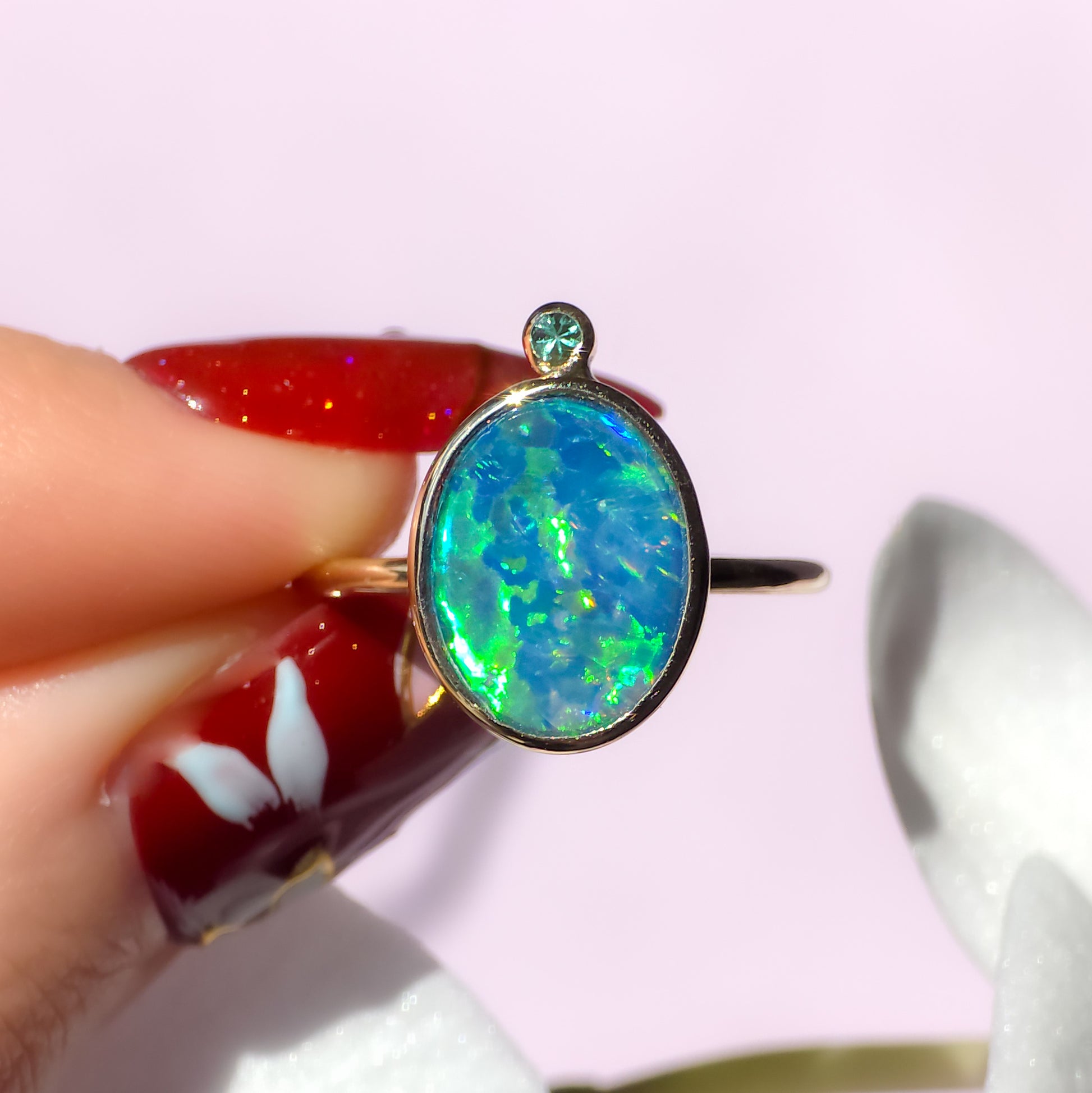 ELYSIUM | 14K Gold Opal doublet Emerald ring / Free Sizing / Australian Coober Pedy Opal / solid gold ring / statement ring