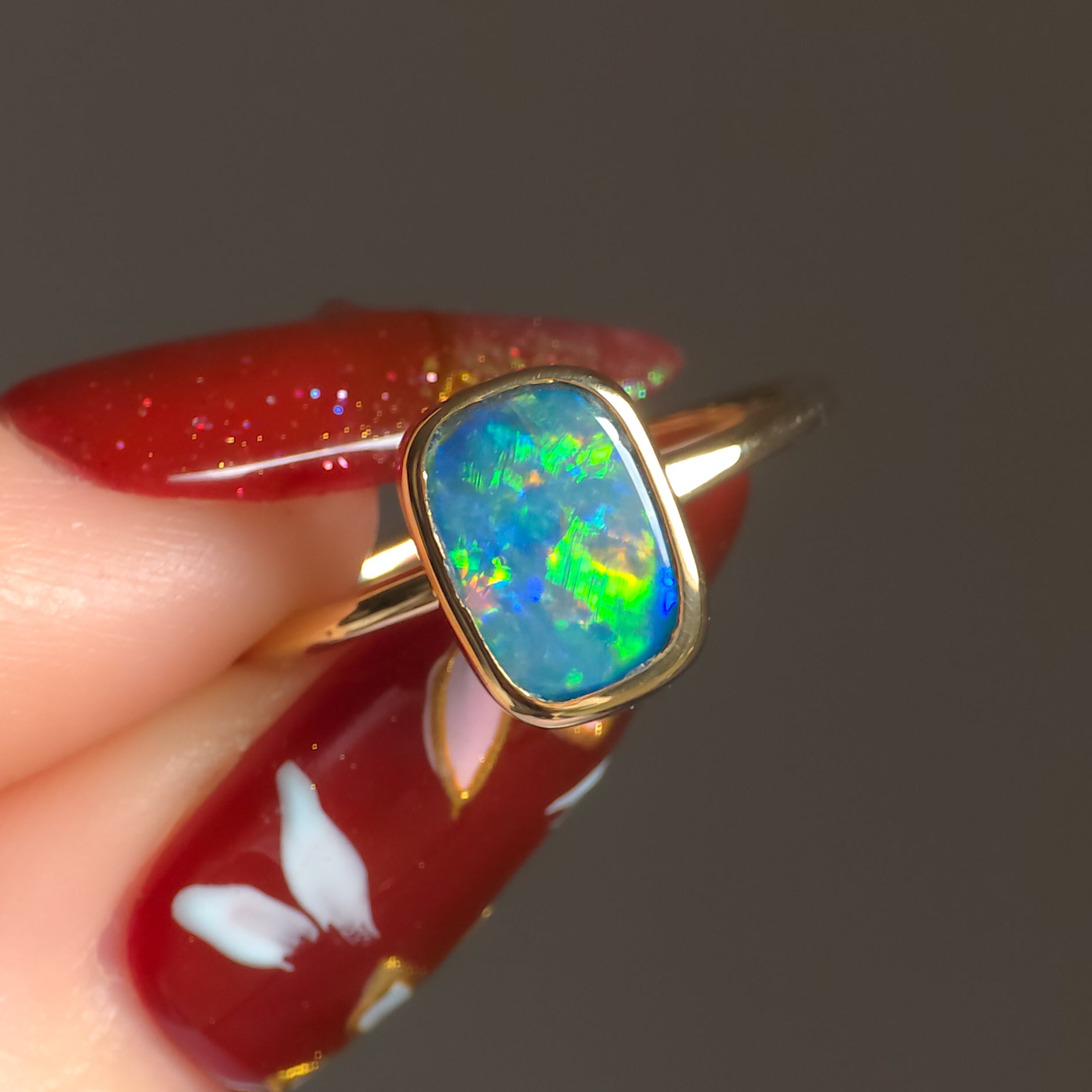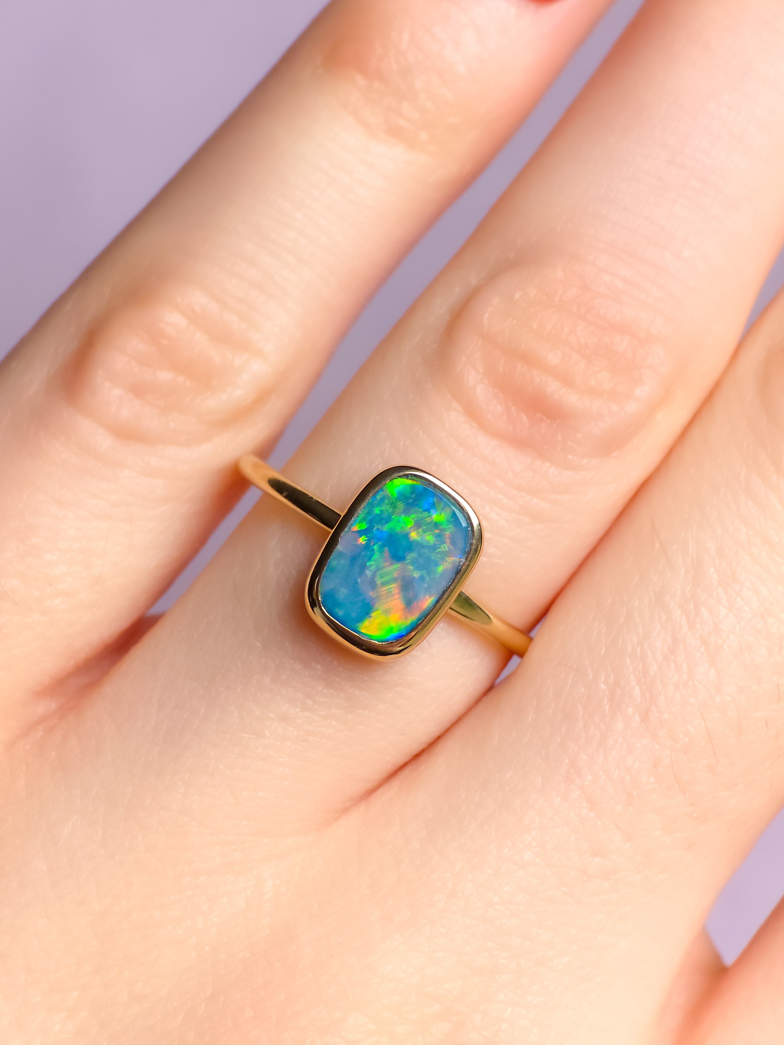 FAIRYTALE | 14K Gold Australian opal doublet ring / Free Sizing / Coober Pedy Opal / solid gold / Dainty ring /statement ring