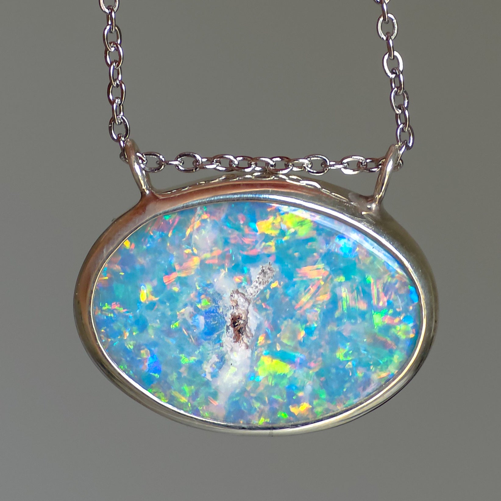 FLORAL | Coober Pedy opal doublet pendant / minimalist jewelry / Australian opal / crystal opal necklace