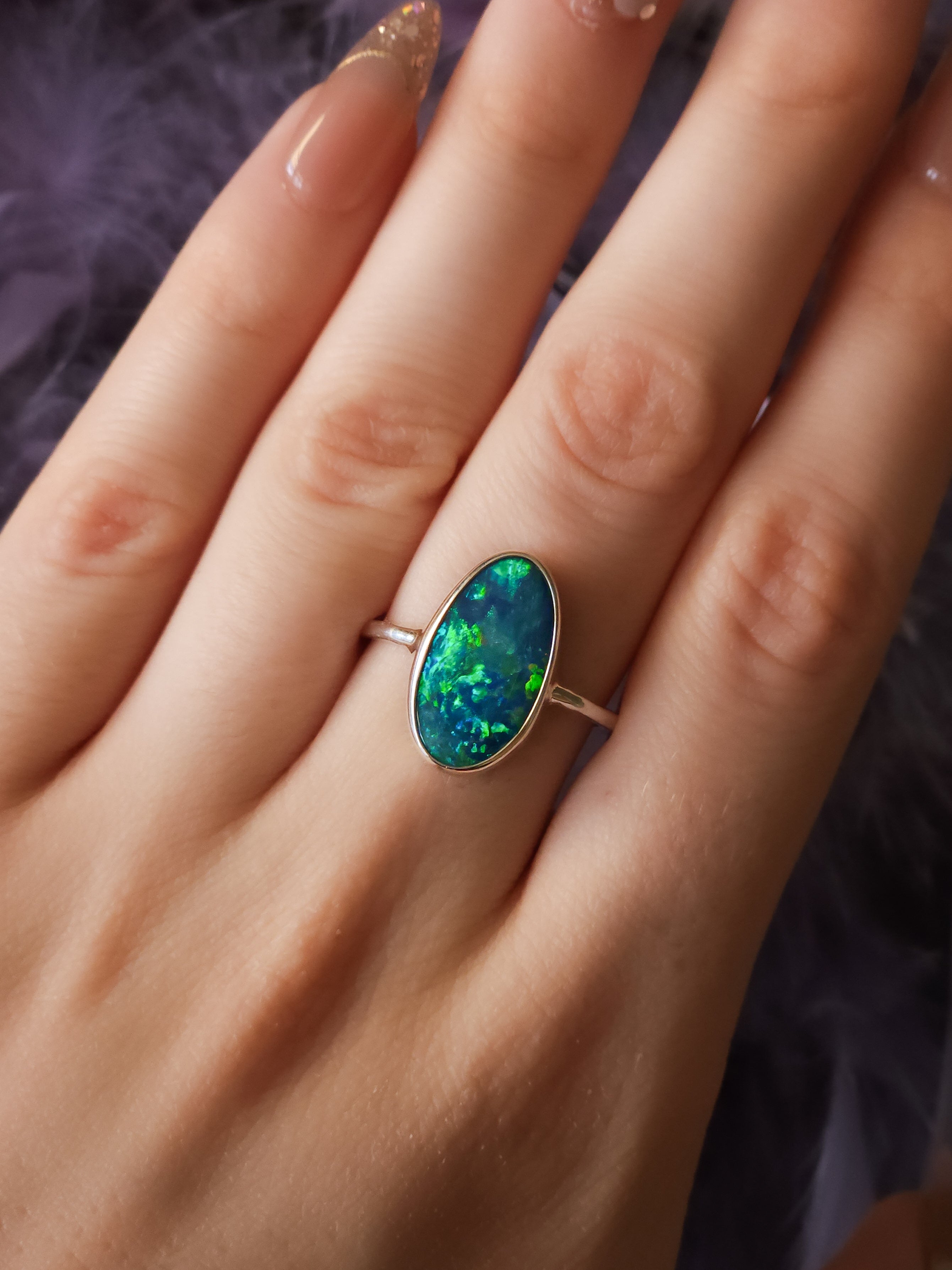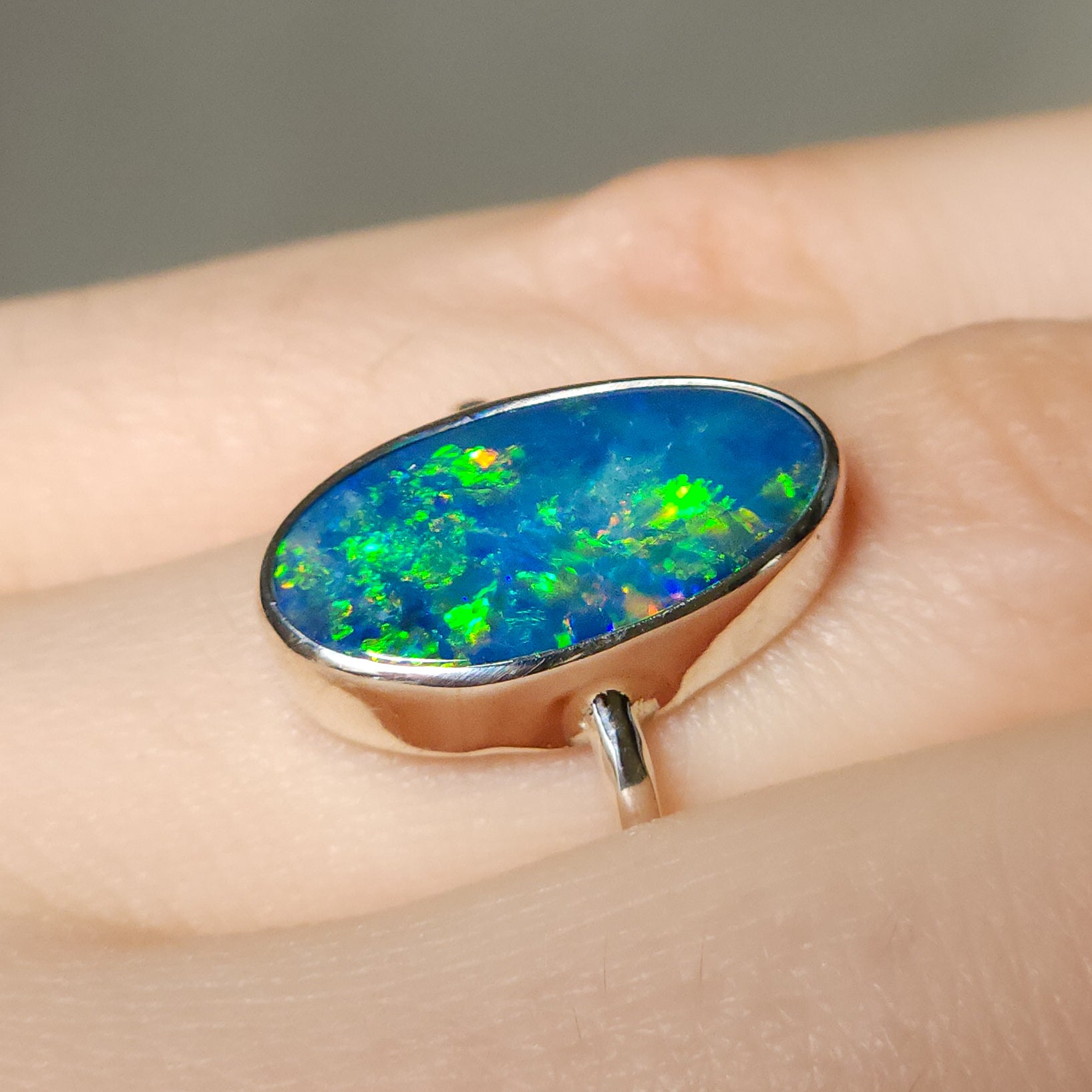 There is a small natural inclusion on the opal face. (Not a crack). Please check photos carefully before purchasing ♡