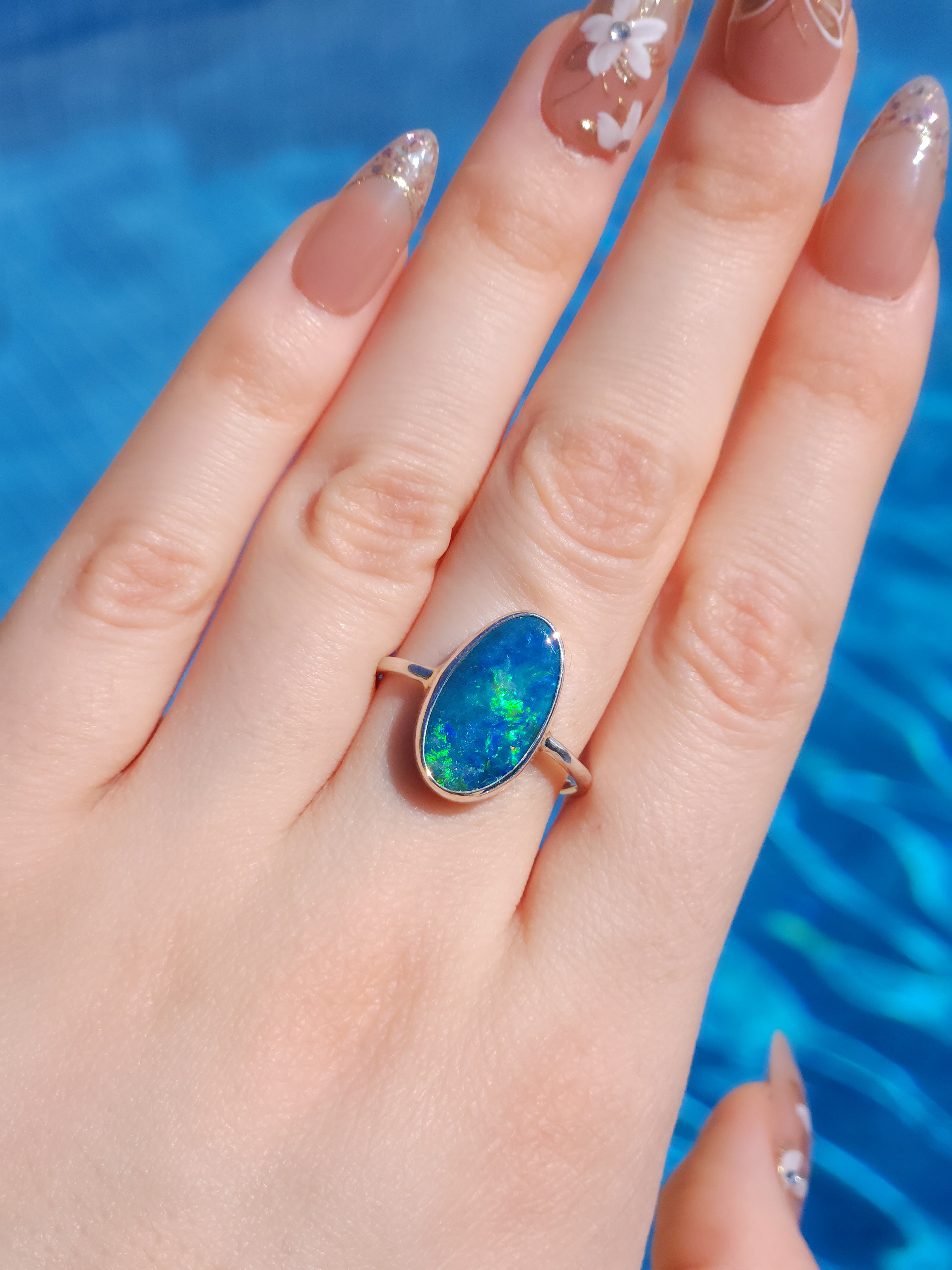FLOWER | Coober Pedy opal ring / Size 8 1/2 / Australian Crystal opal doublet / Minimalist ring / dainty jewelry