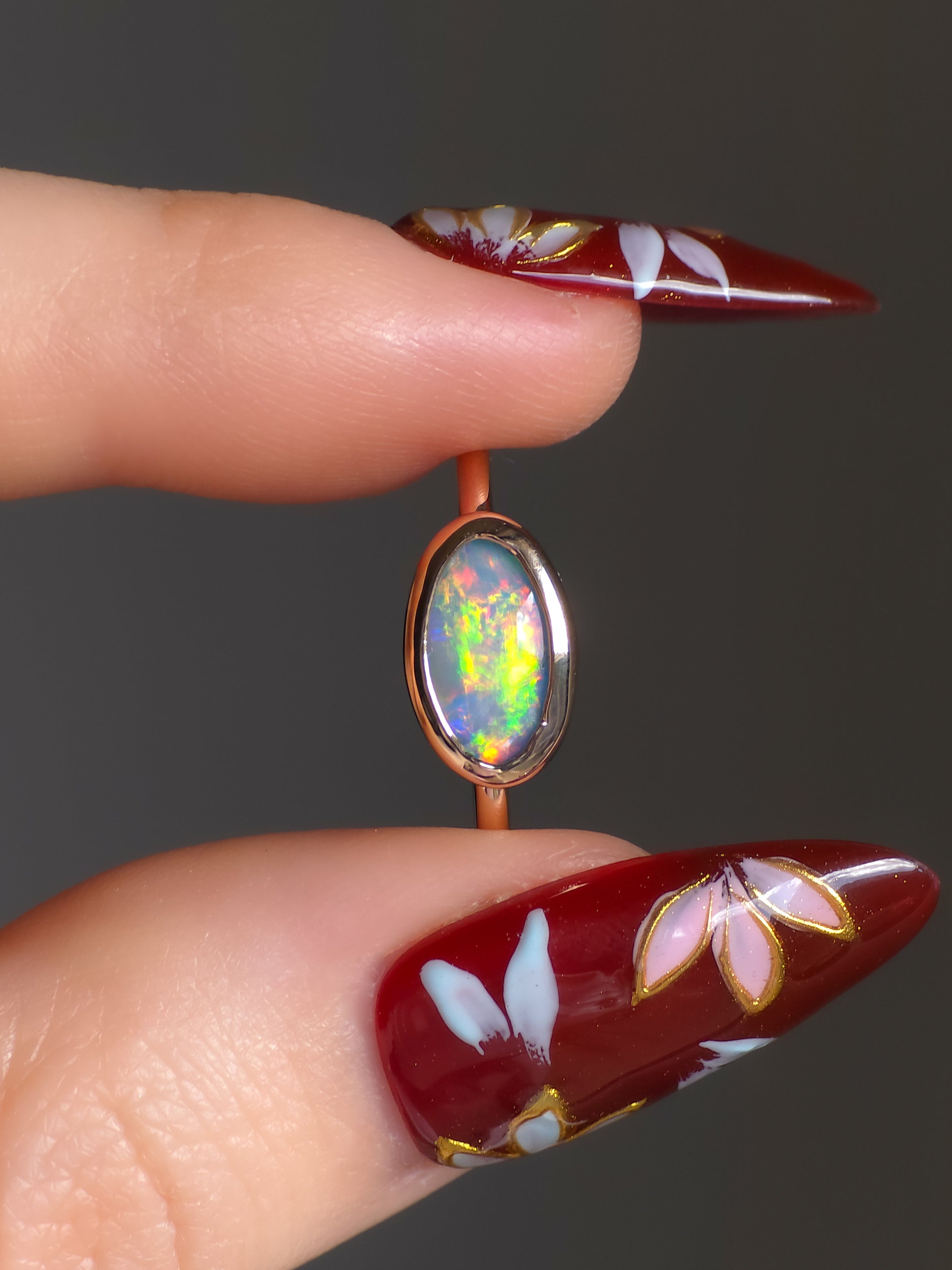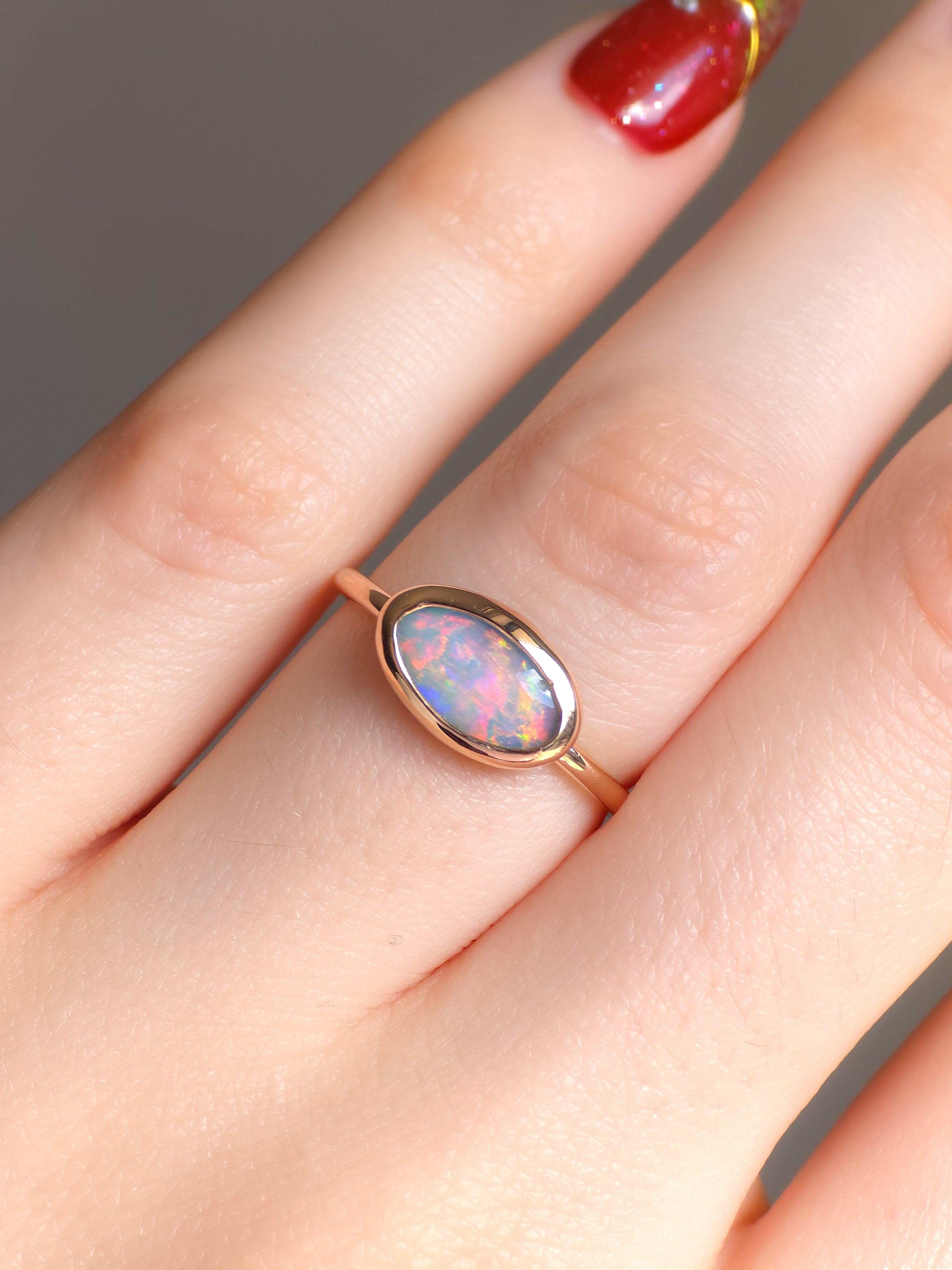 FLUORESCENT | 14K Rose Gold solid Australian Opal ring / Free Sizing / 0.9 cts / Coober Pedy Opal / solid rose gold / Dainty ring / minimal jewelry