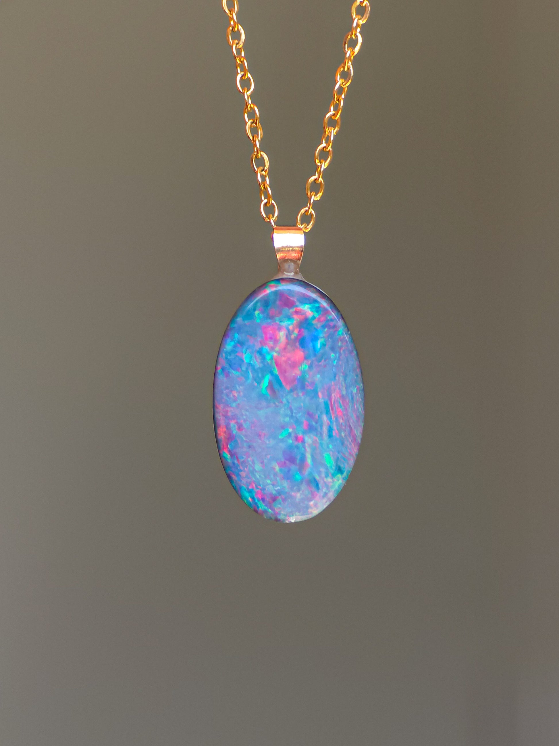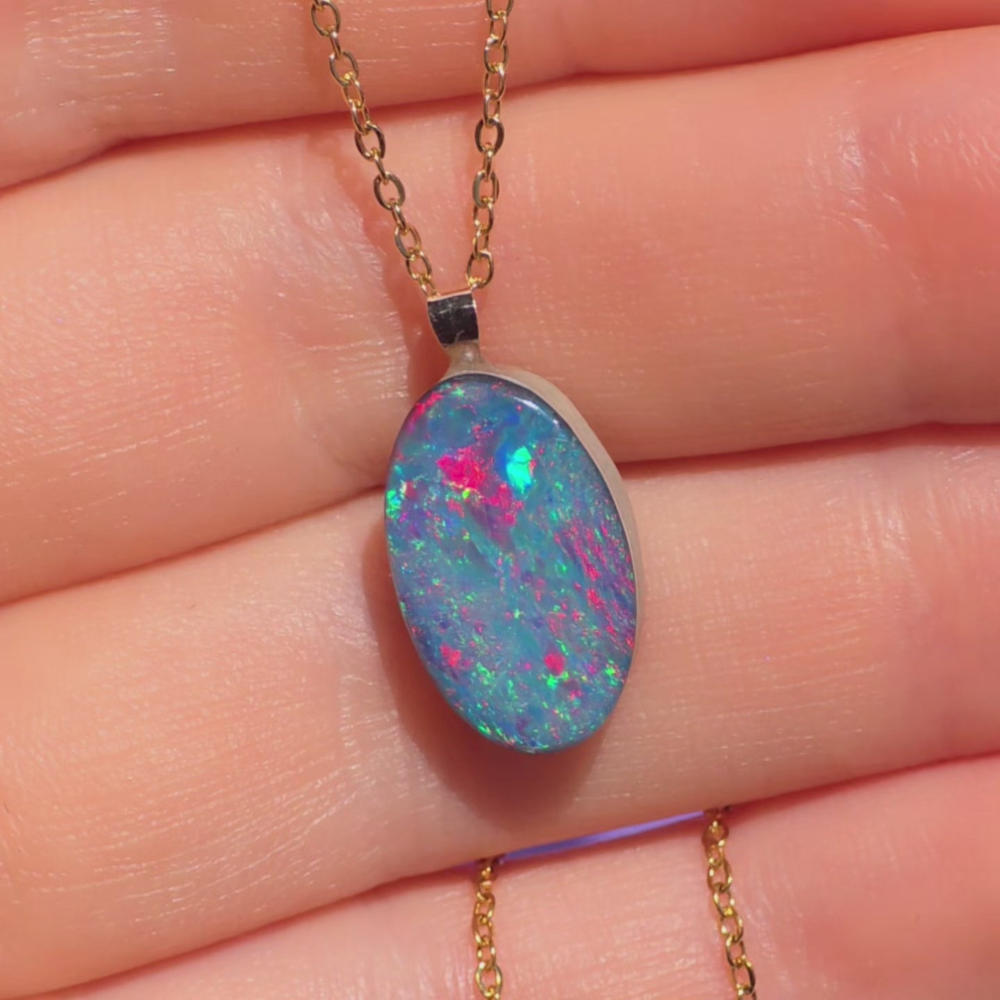 GLOW | 14K Gold Coober Pedy opal doublet/ Australian opal necklace/ firey opal/ rainbow opal/ minimalist jewelry/ Pink opal