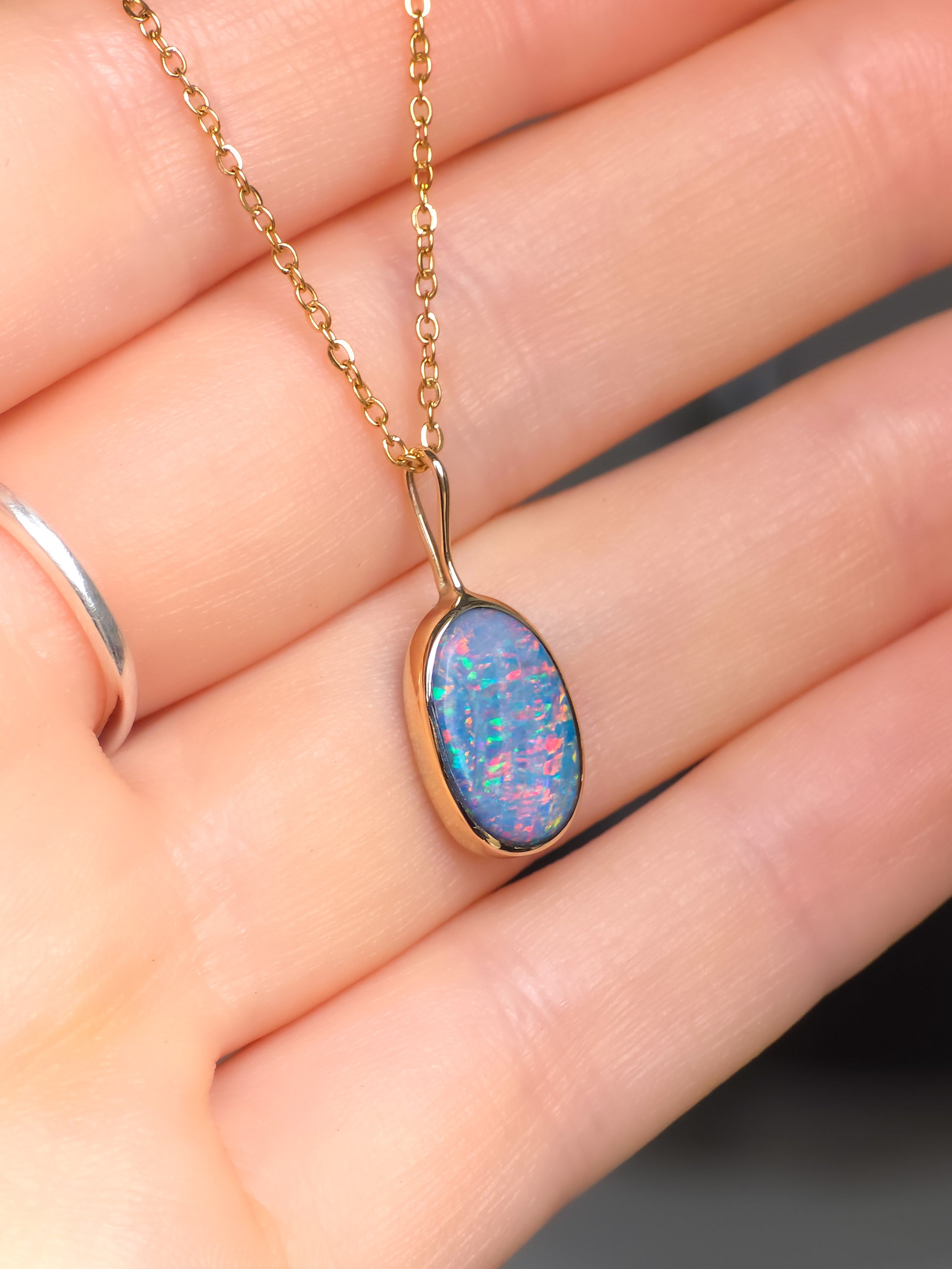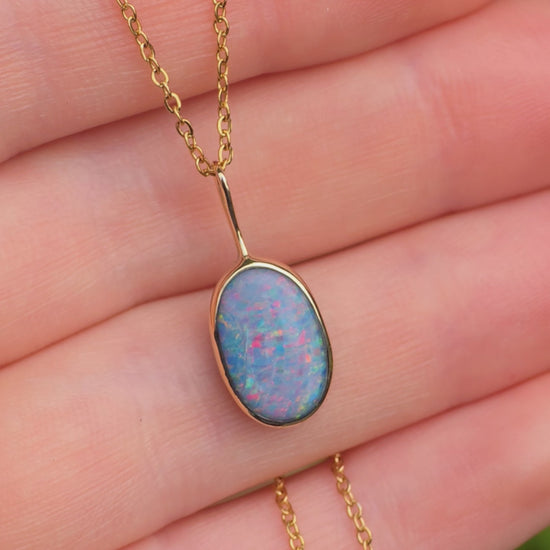 JUNIA | 14K Gold Coober Pedy opal doublet necklace/ crystal opal/ minimalist jewelry/ opal jewellery/ opale/ colorful gem