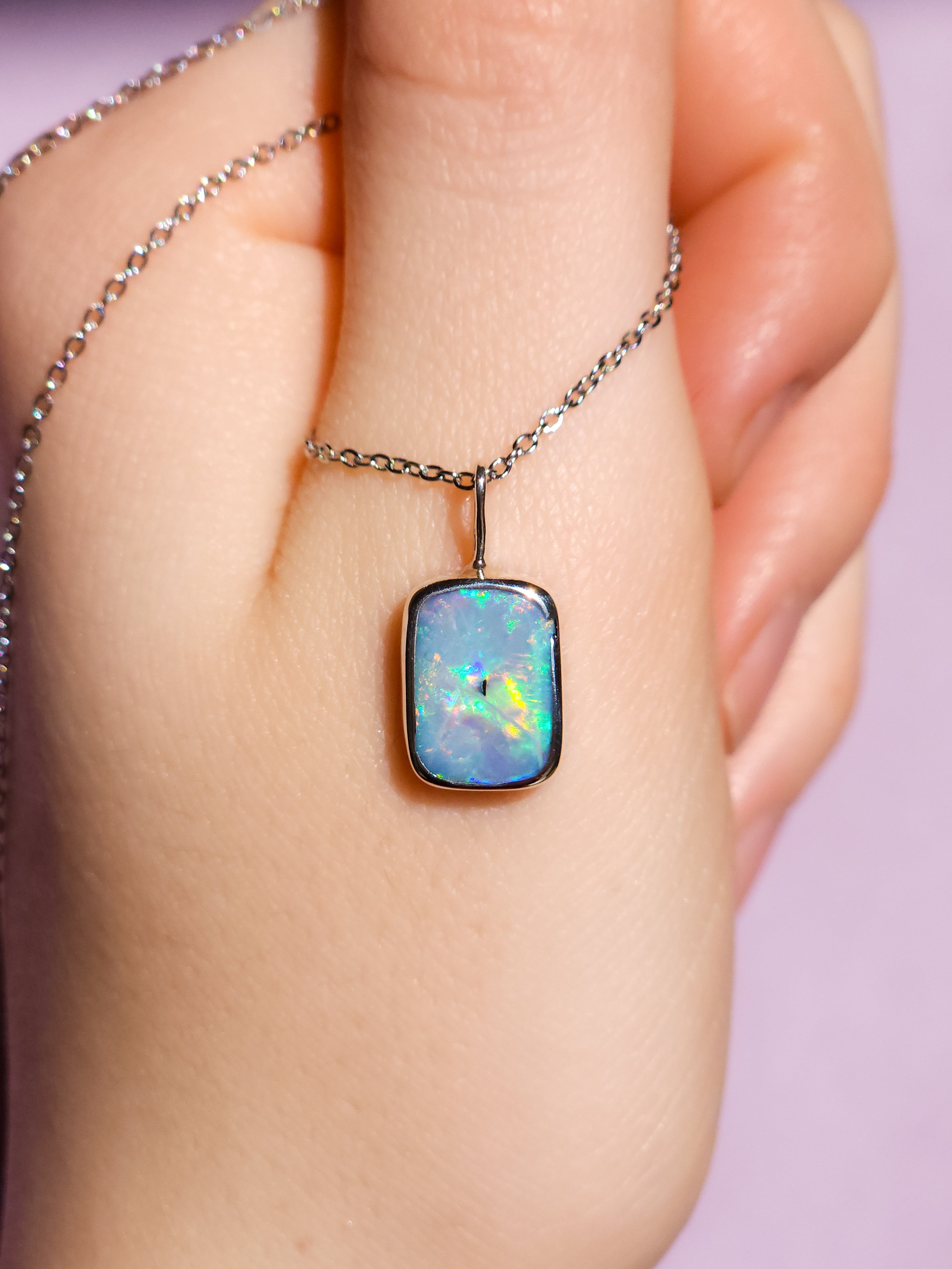 LIGHT | Australian opal doublet pendant / 925 Silver/ Coober Pedy/ statement necklace/ dainty jewelry