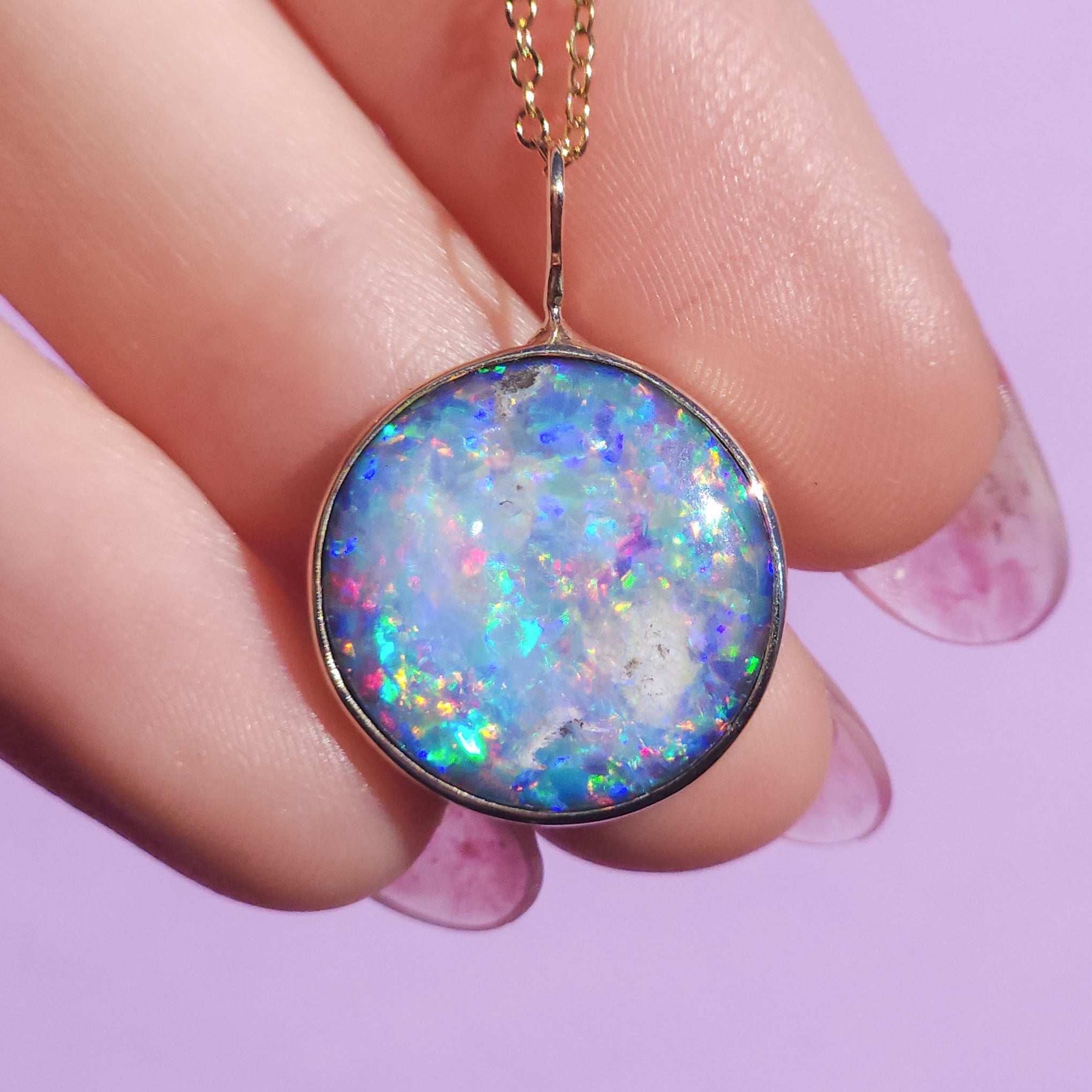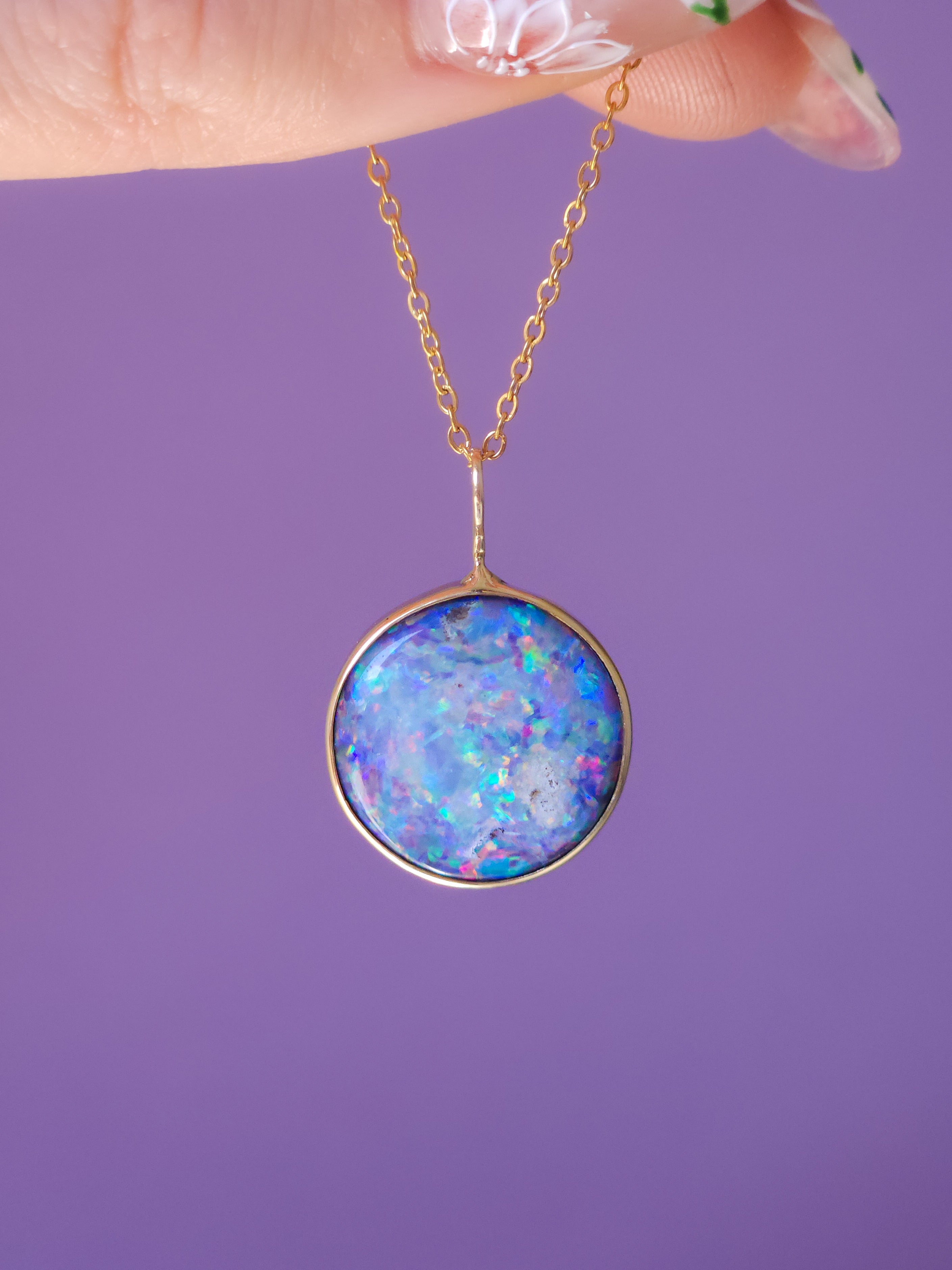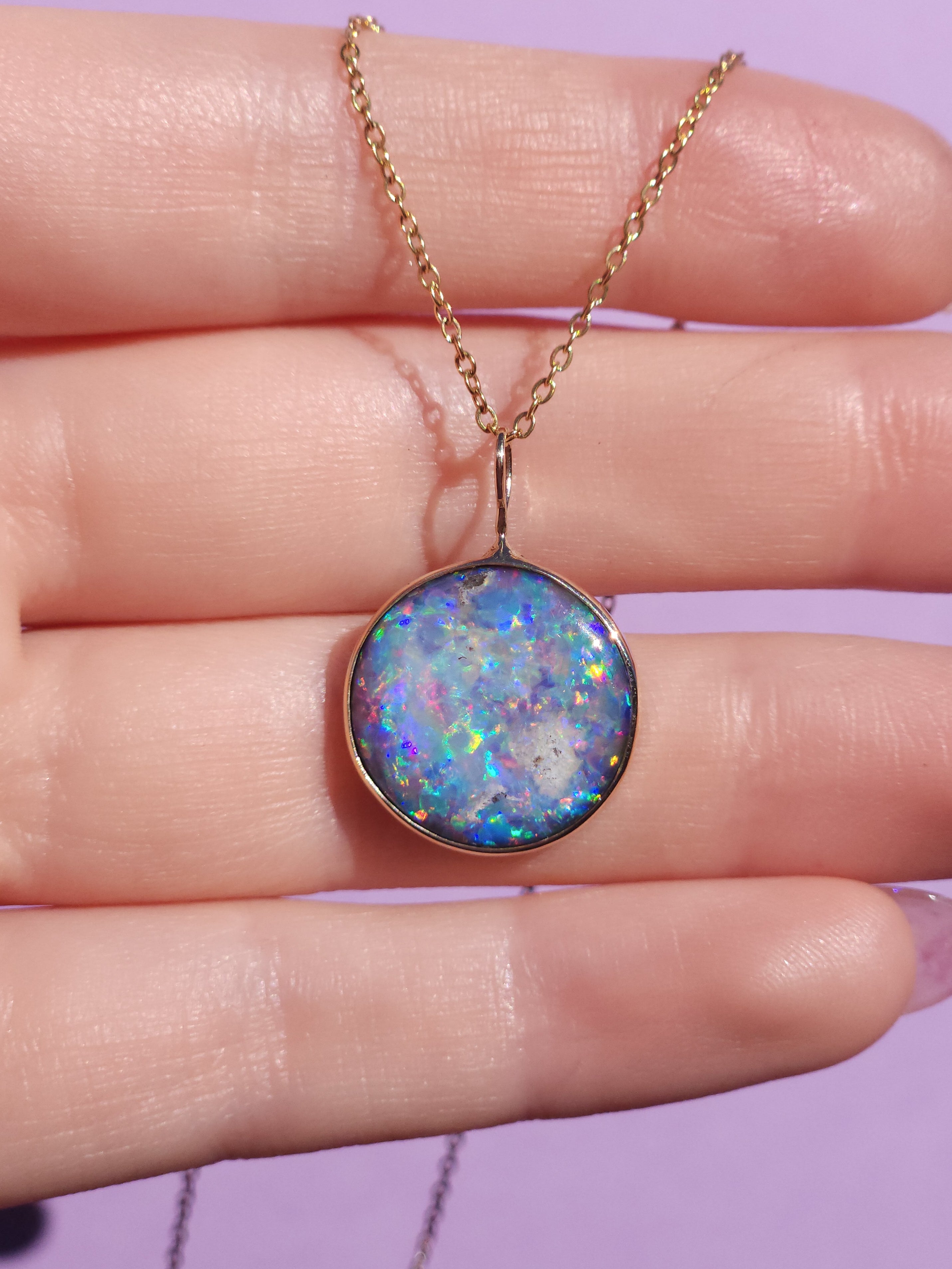 LILAC | 14K Gold Coober Pedy opal doublet necklace/ dark base opal/ minimalist jewelry/ Purple rainbow opal / Australian opal / Solid gold