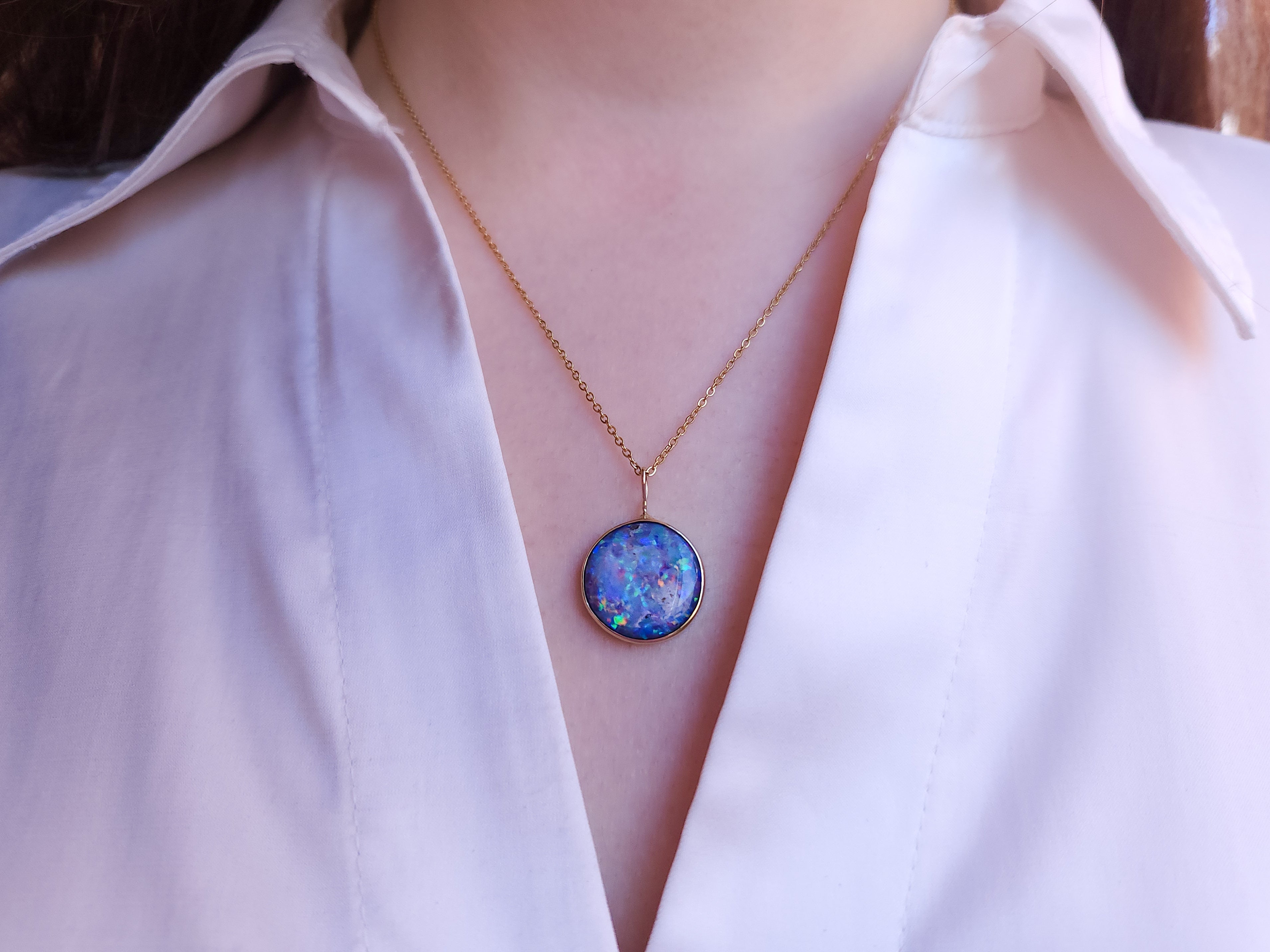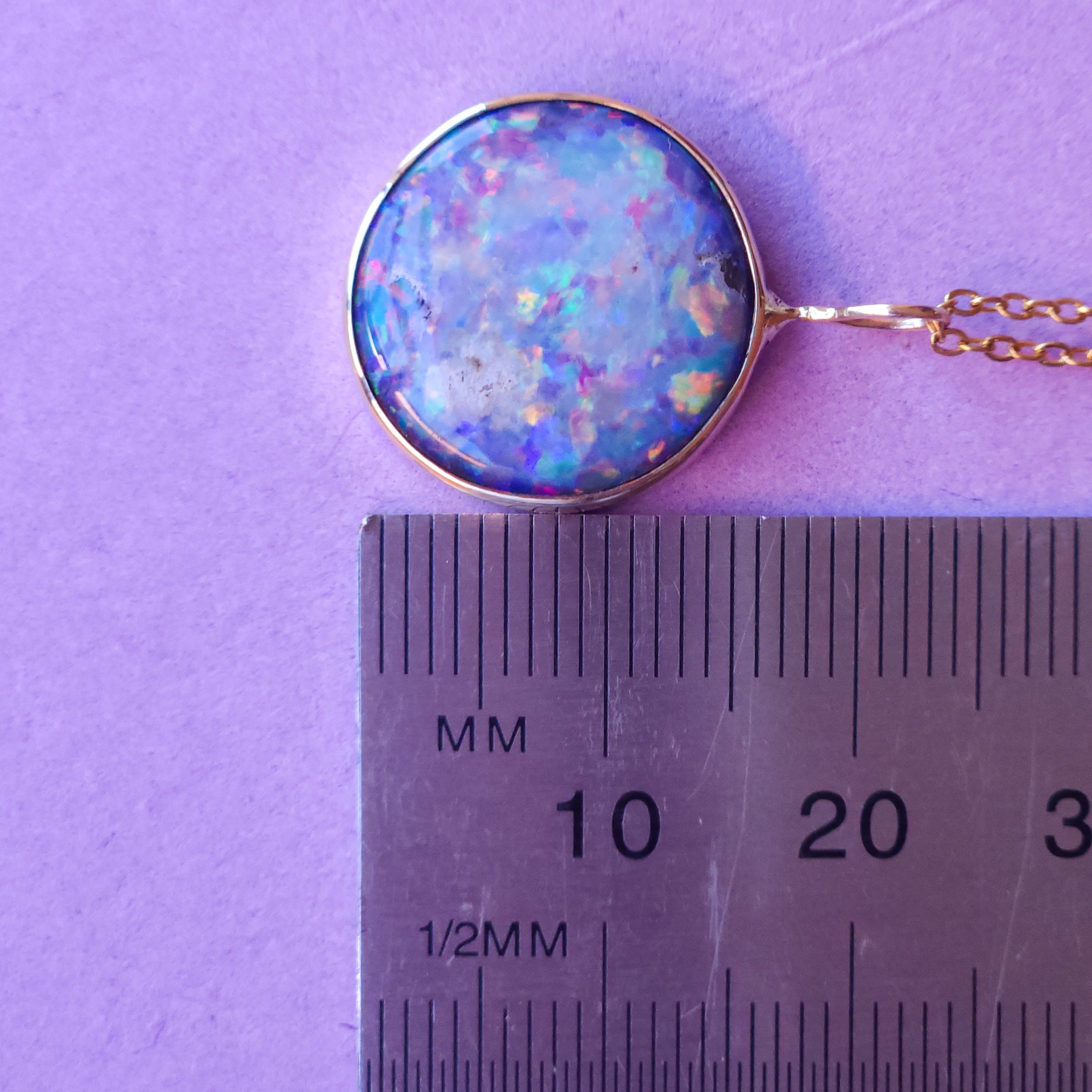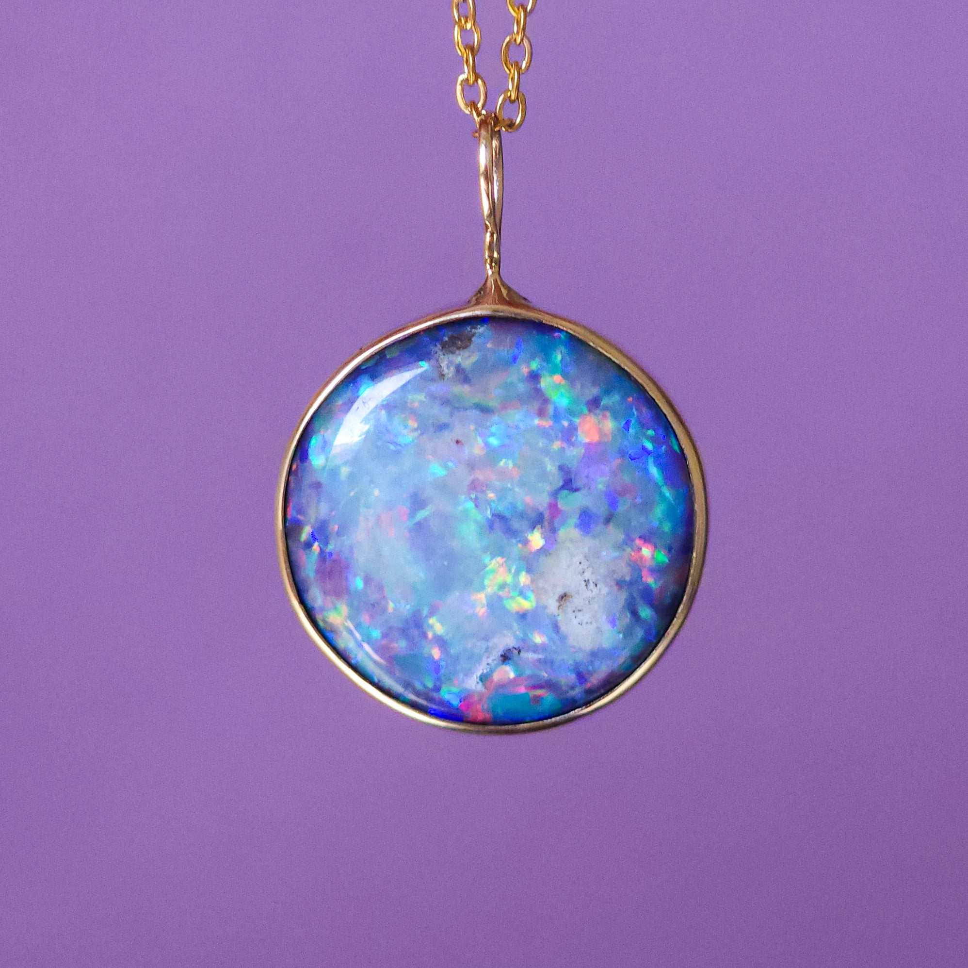 LILAC | 14K Gold Coober Pedy opal doublet necklace/ dark base opal/ minimalist jewelry/ Purple rainbow opal / Australian opal / Solid gold