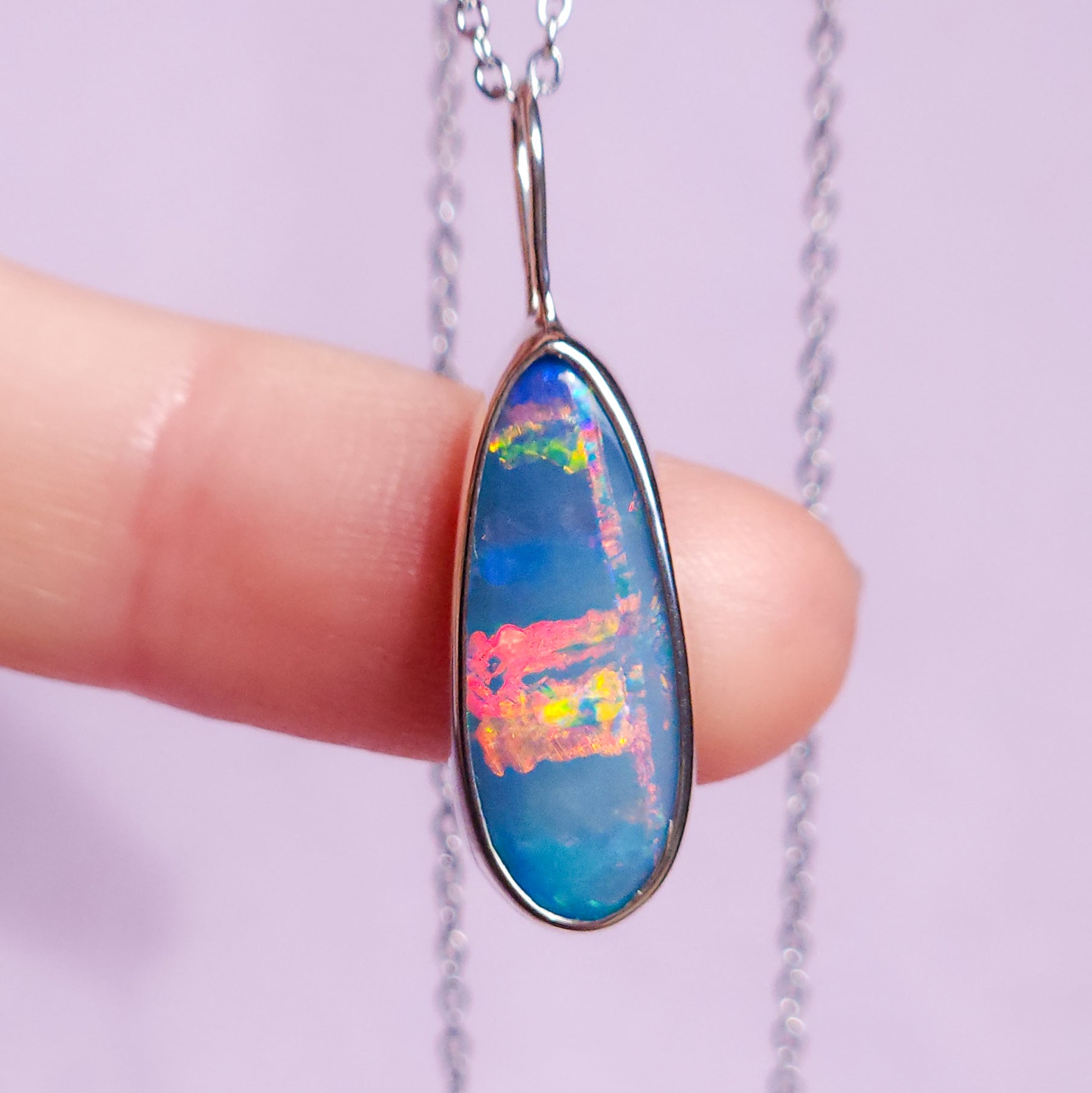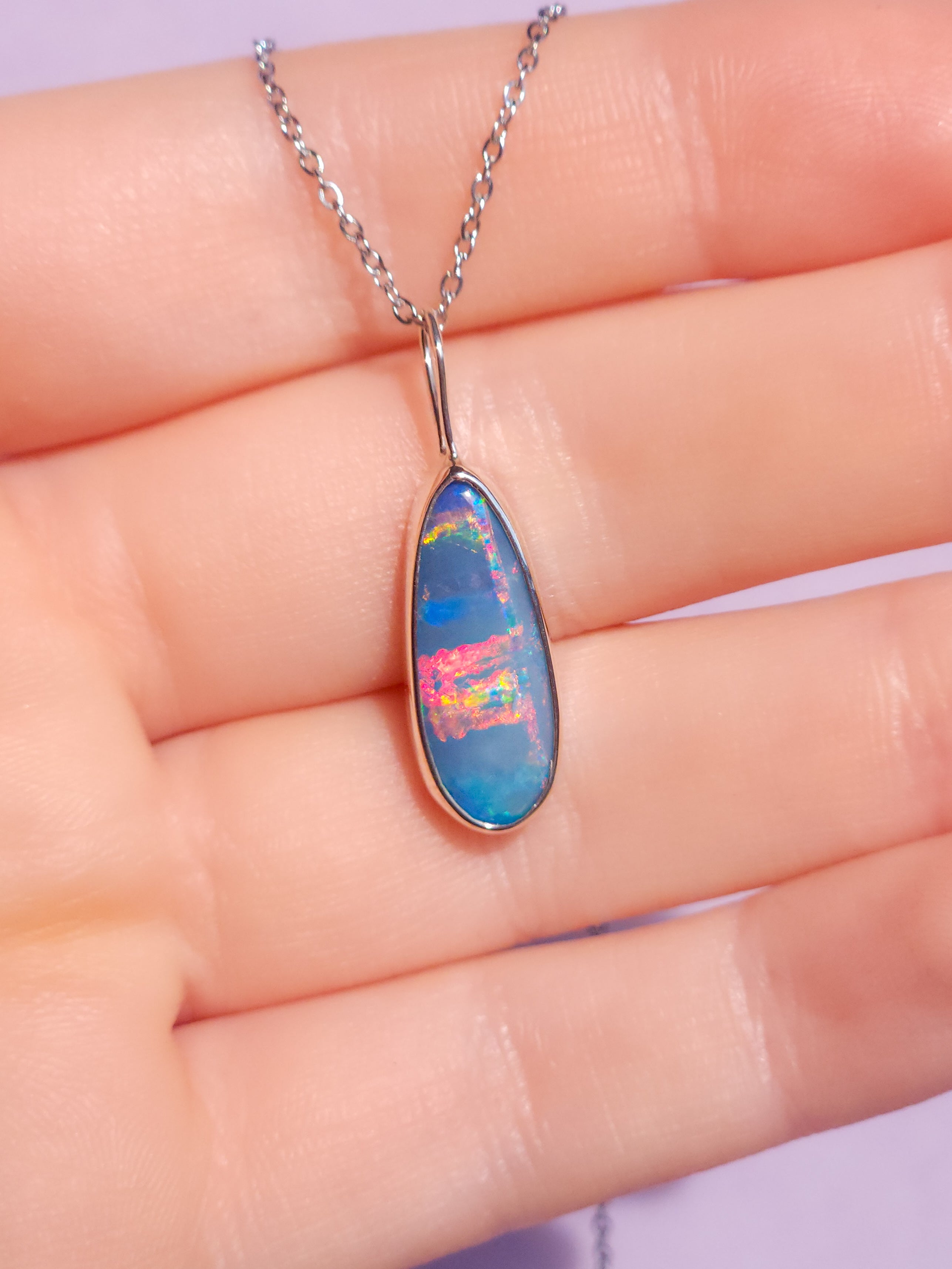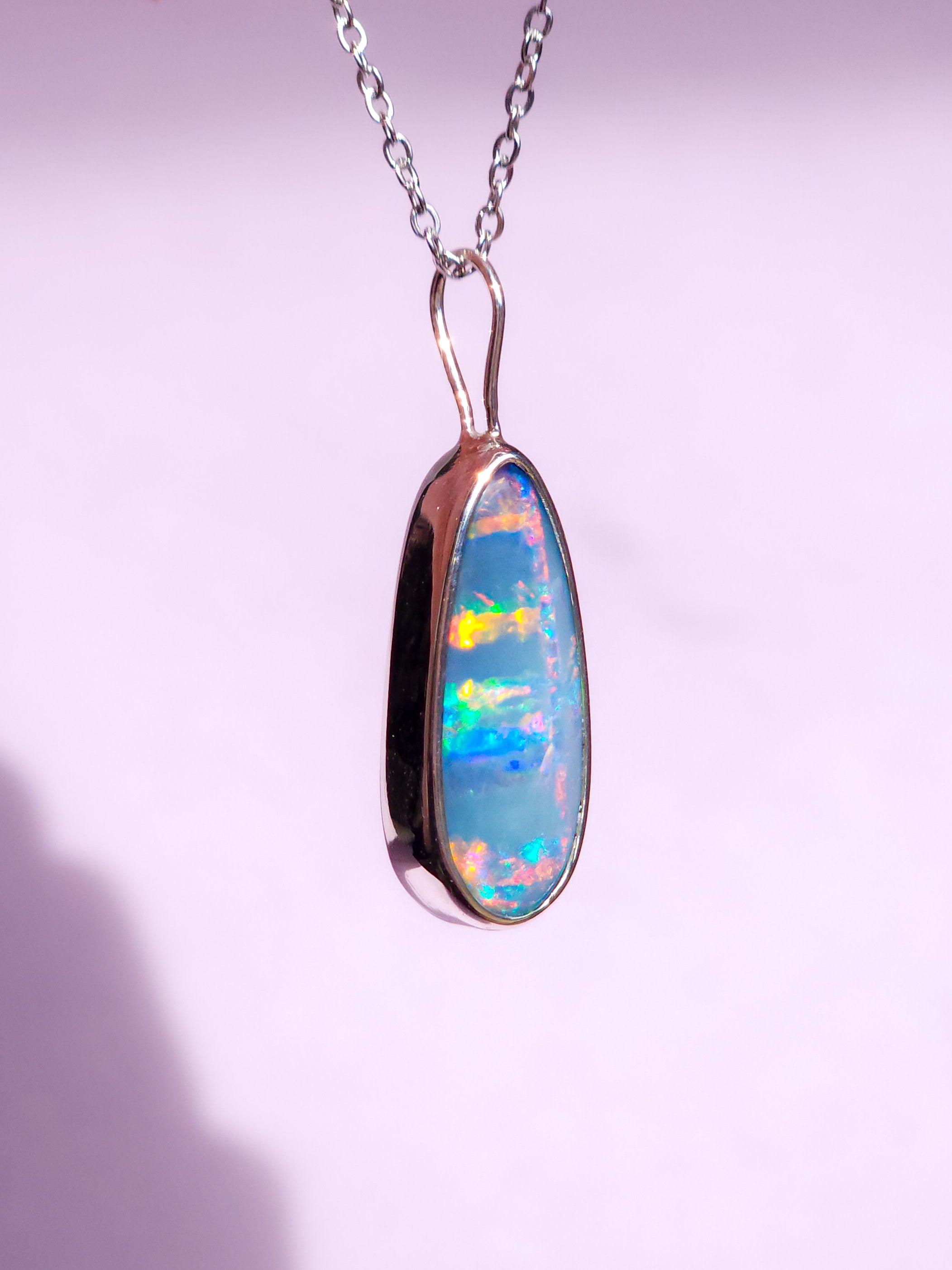 LIORA | Australian opal doublet pendant / 925 Silver/ Coober Pedy/ statement necklace/ dainty jewelry / Red opal