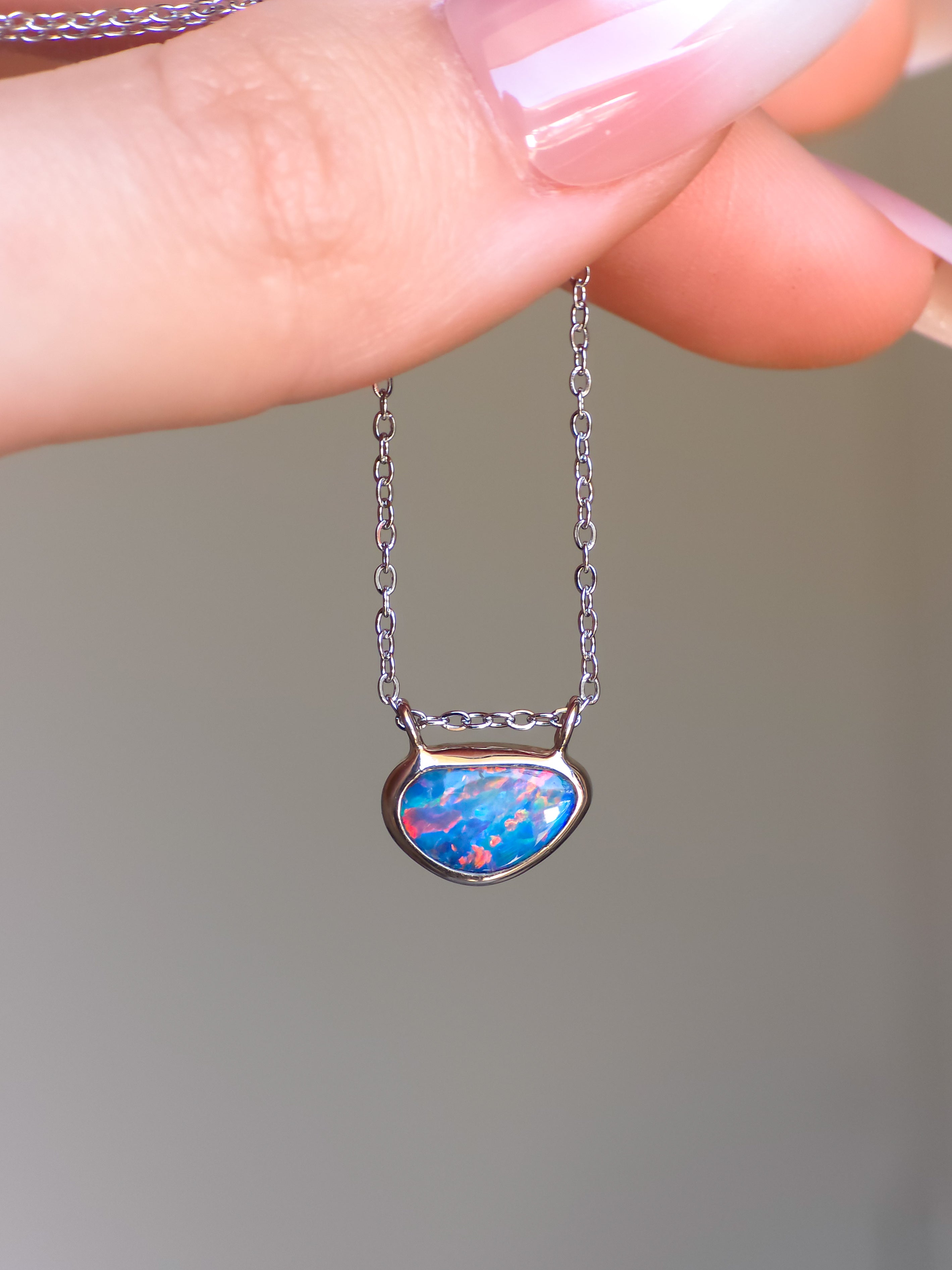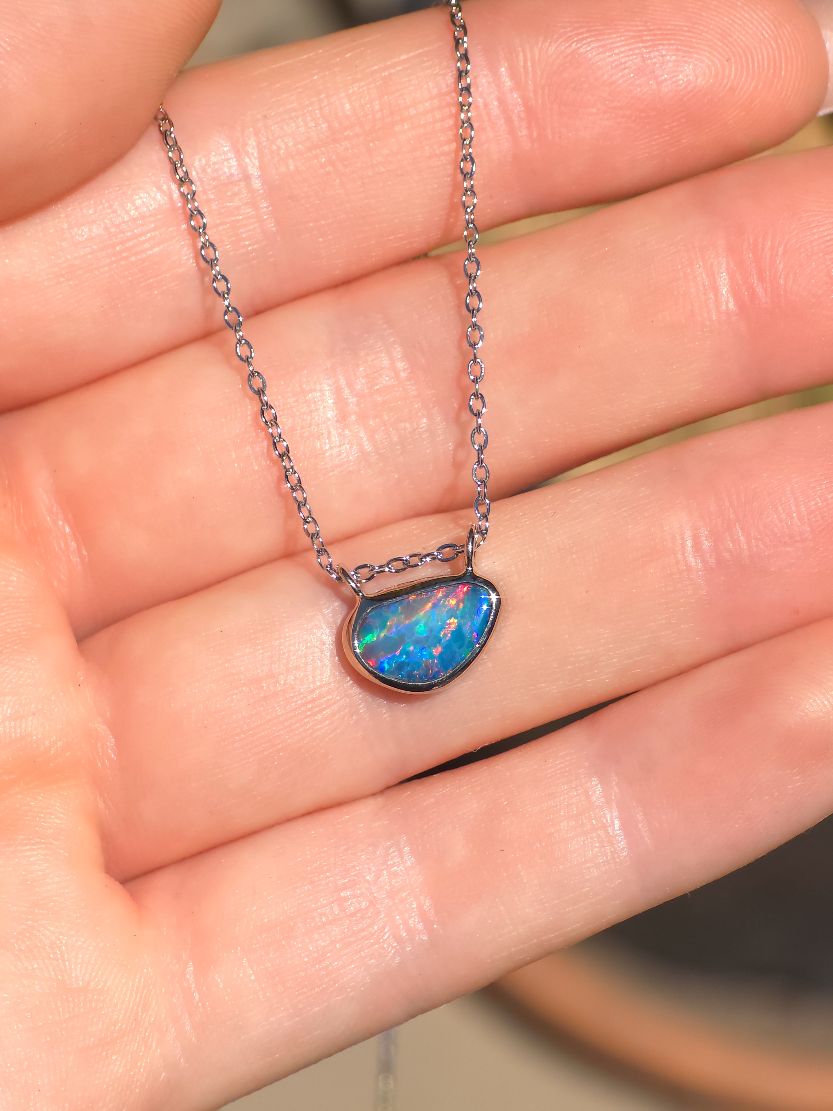 LOTUS | 14K White Gold Coober Pedy Opal Necklace / Dainty Jewelry / Charm Pendant