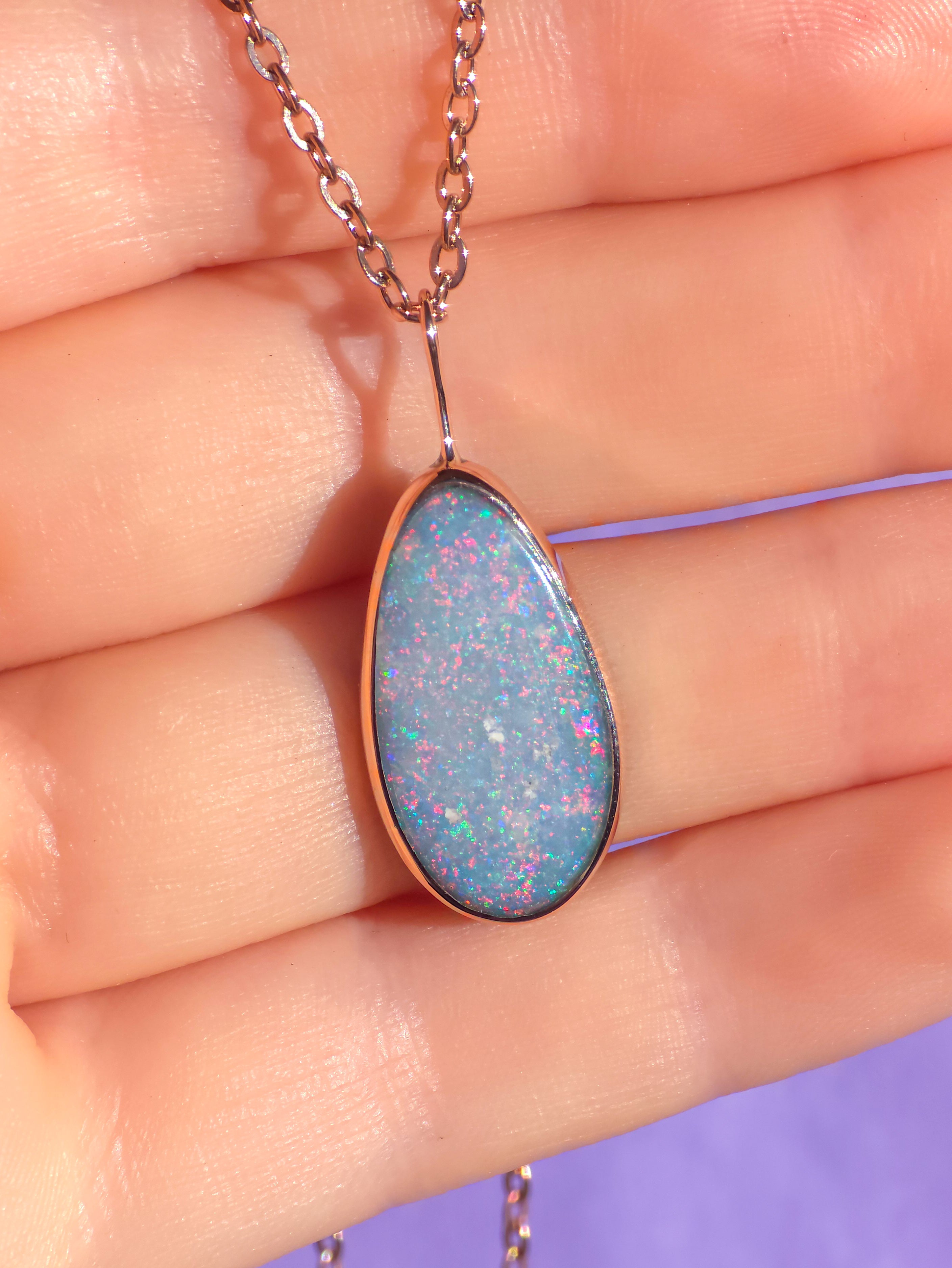 Please check photos carefully before purchasing ♡ The opal is glued with high strength epoxy resin. The opal has inclusions.