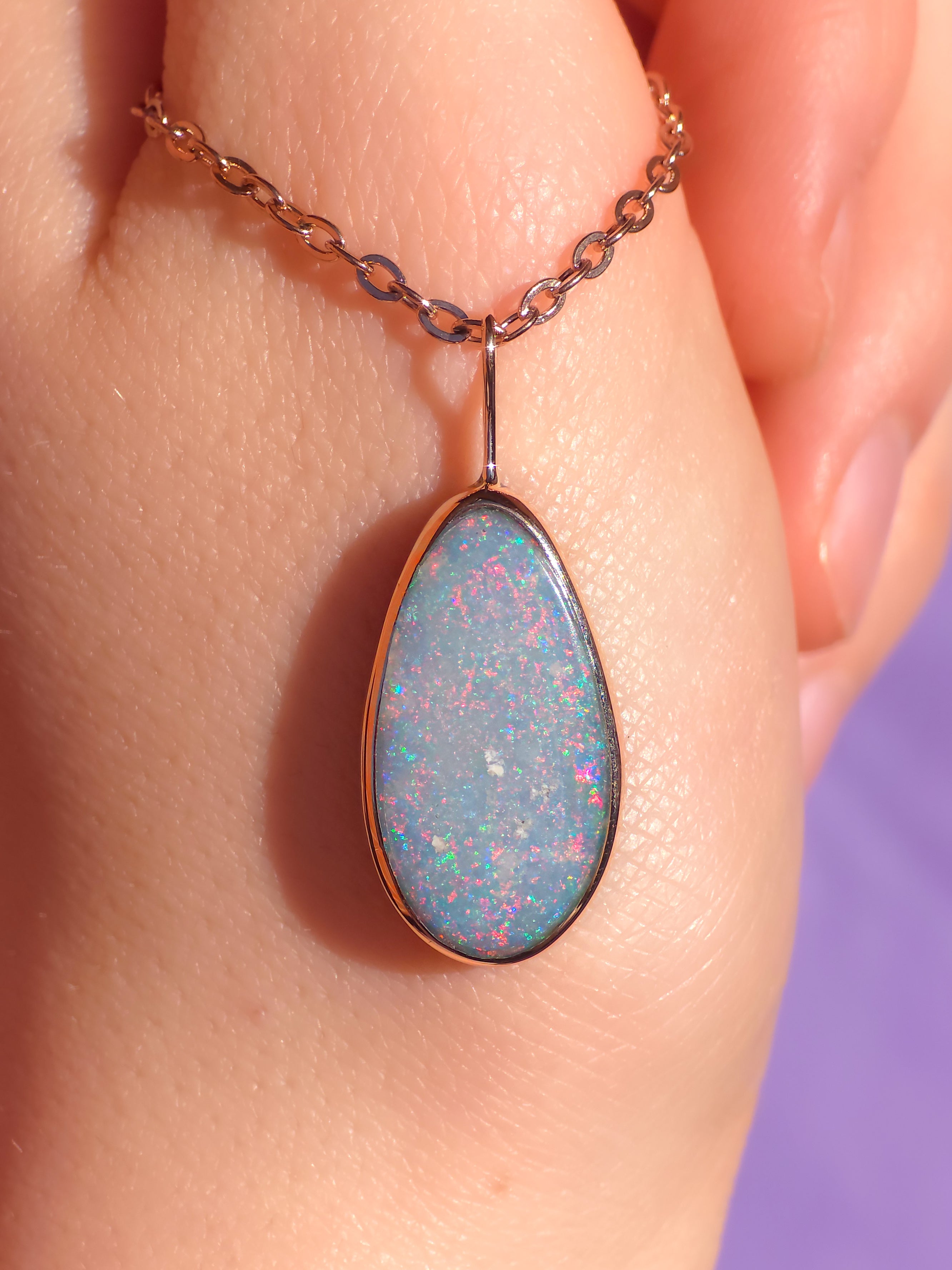Mintabie 14K Rose Gold doublet pendant/ Australian opal necklace / pink Mintabie opal / minimal jewelry
