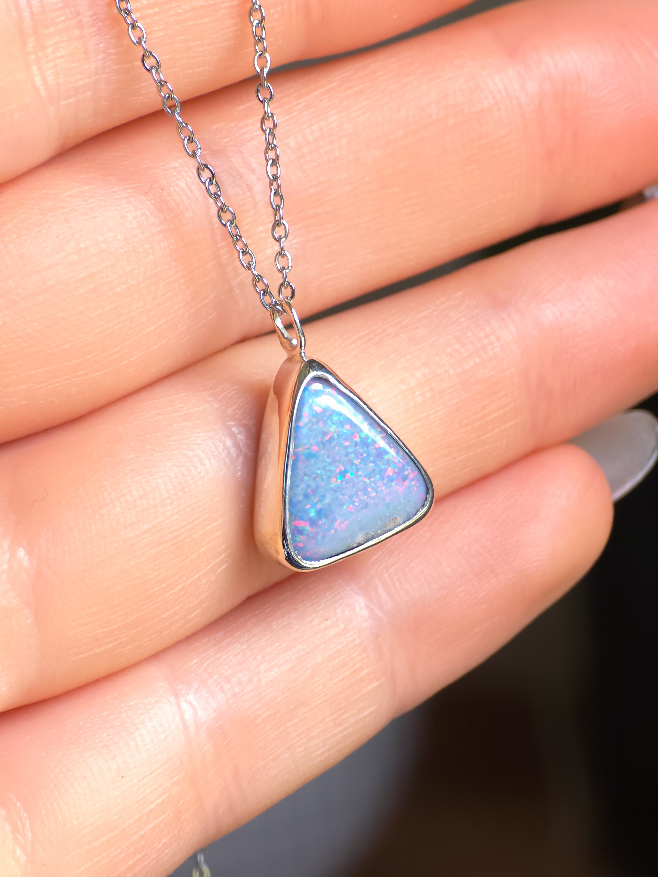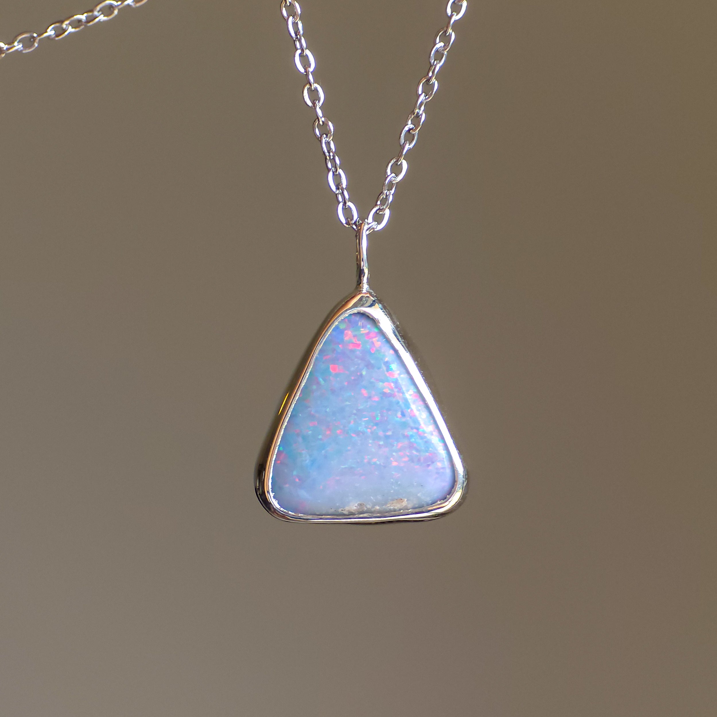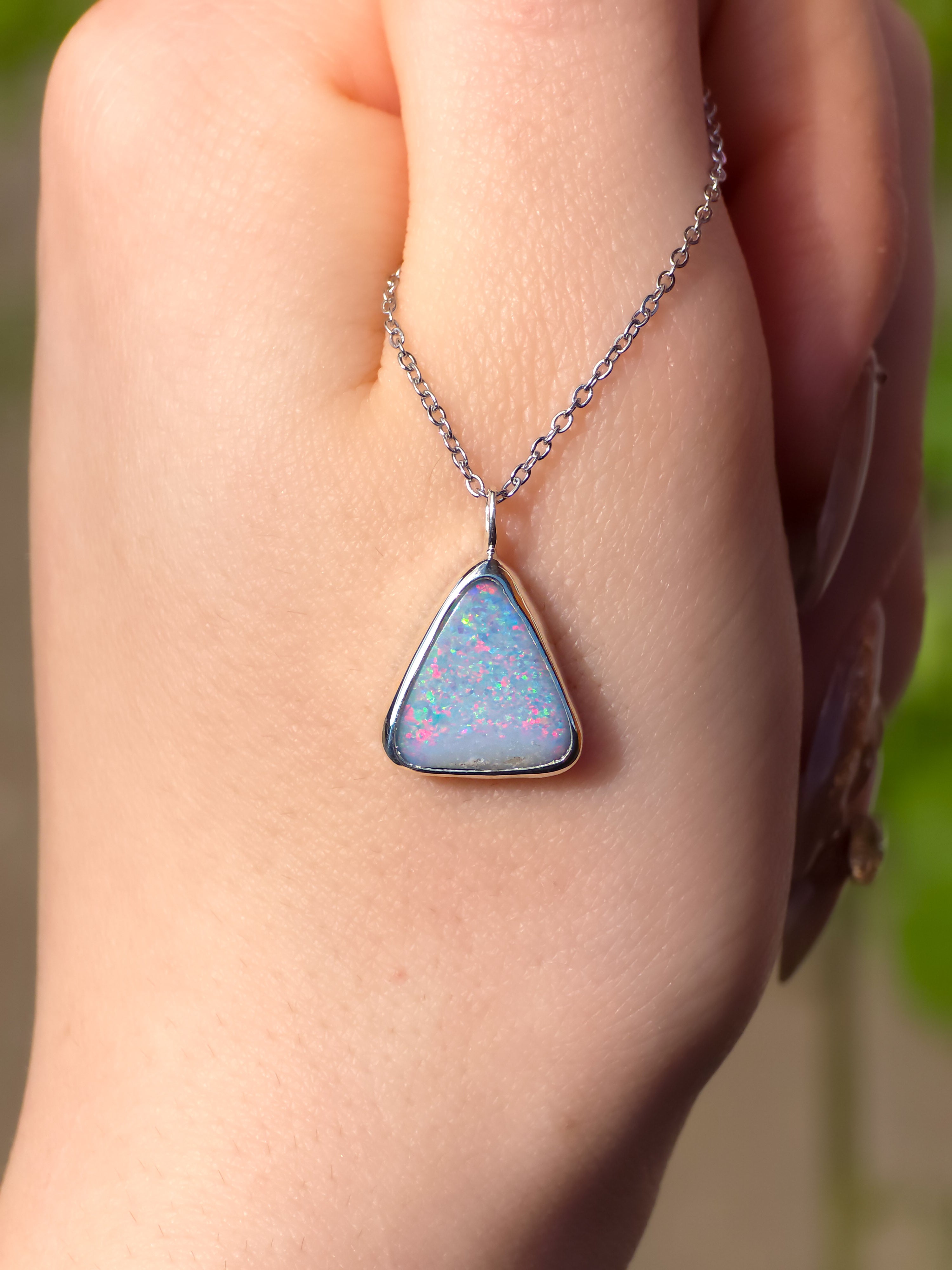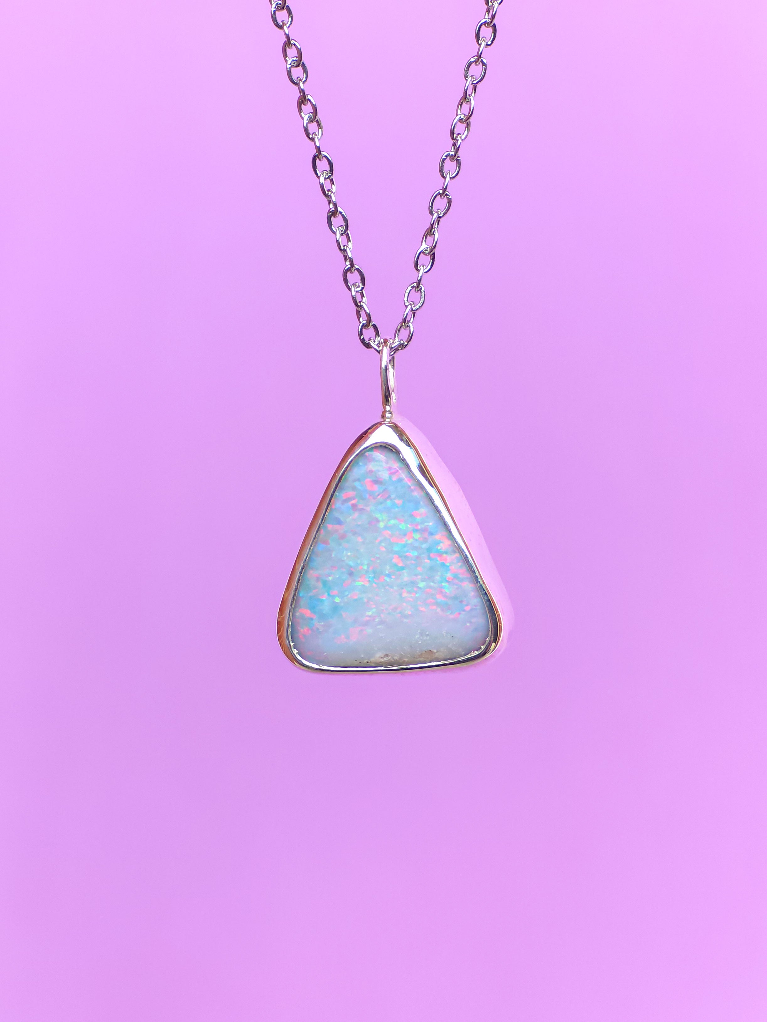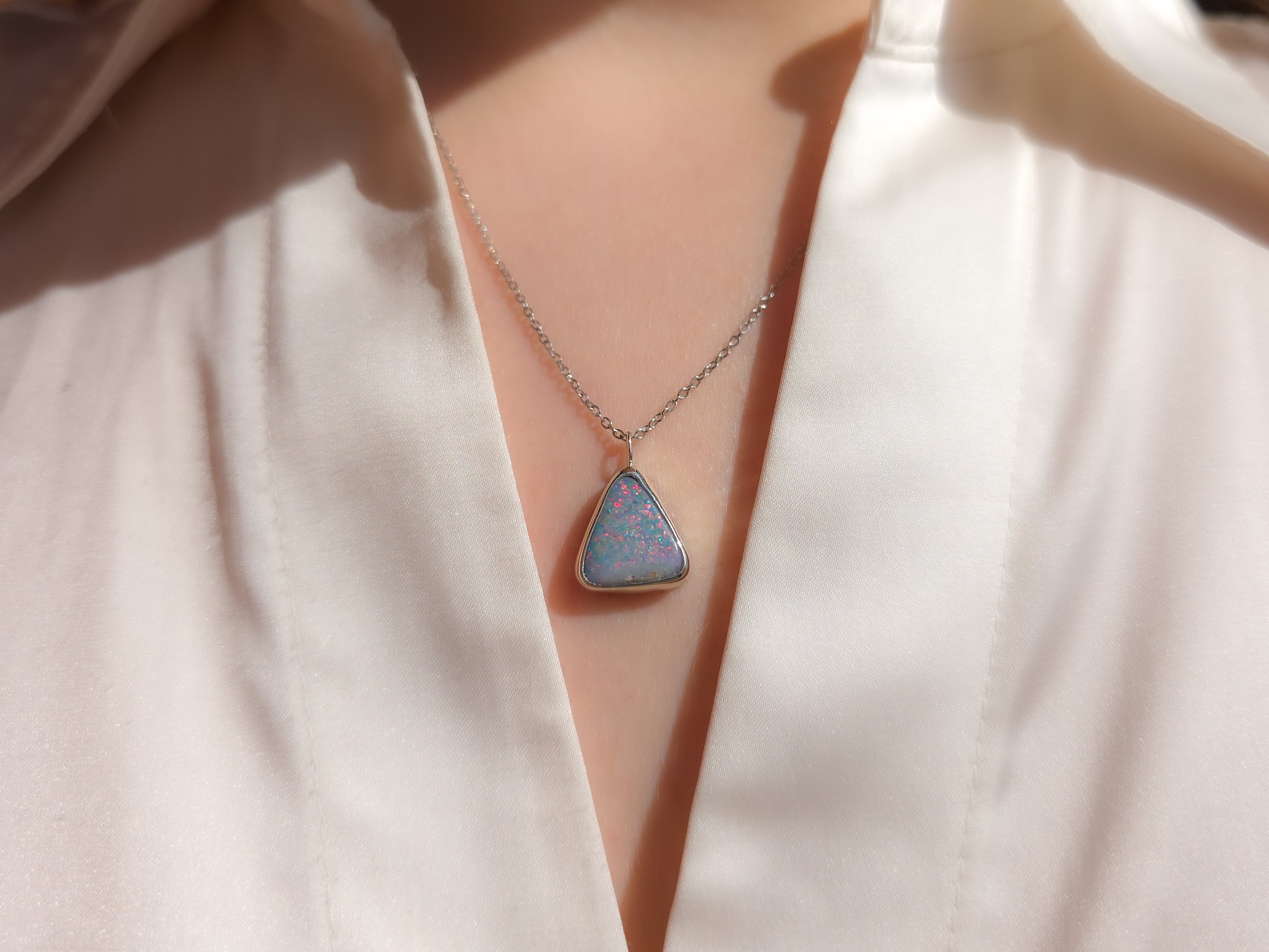 PIXIE | Pink Australian Opal Doublet Pendant / Coober Pedy opal necklace / statement jewelry / Triangle Pendant