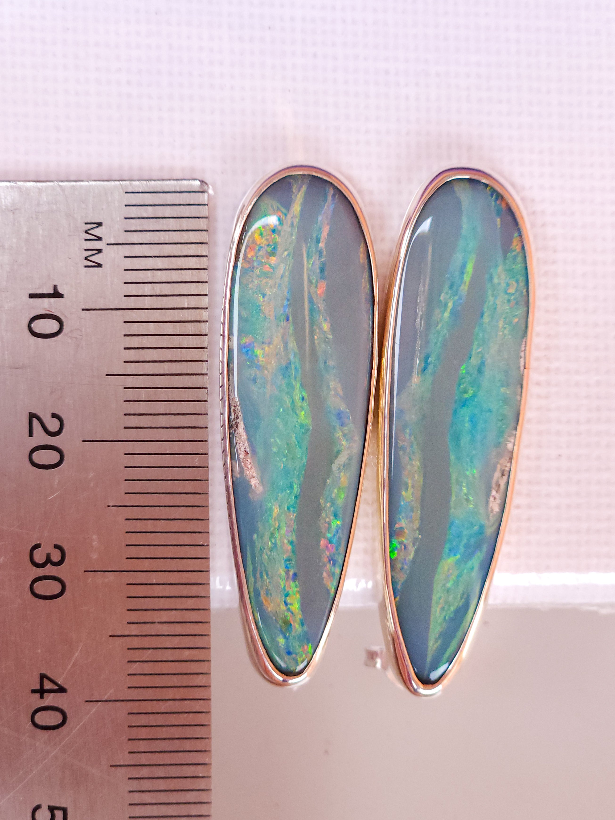 - There is a small scratch and chip on the opal face. It does not affect the integrity of the stone. There are naturally occuring rock inclusions in both earrings.