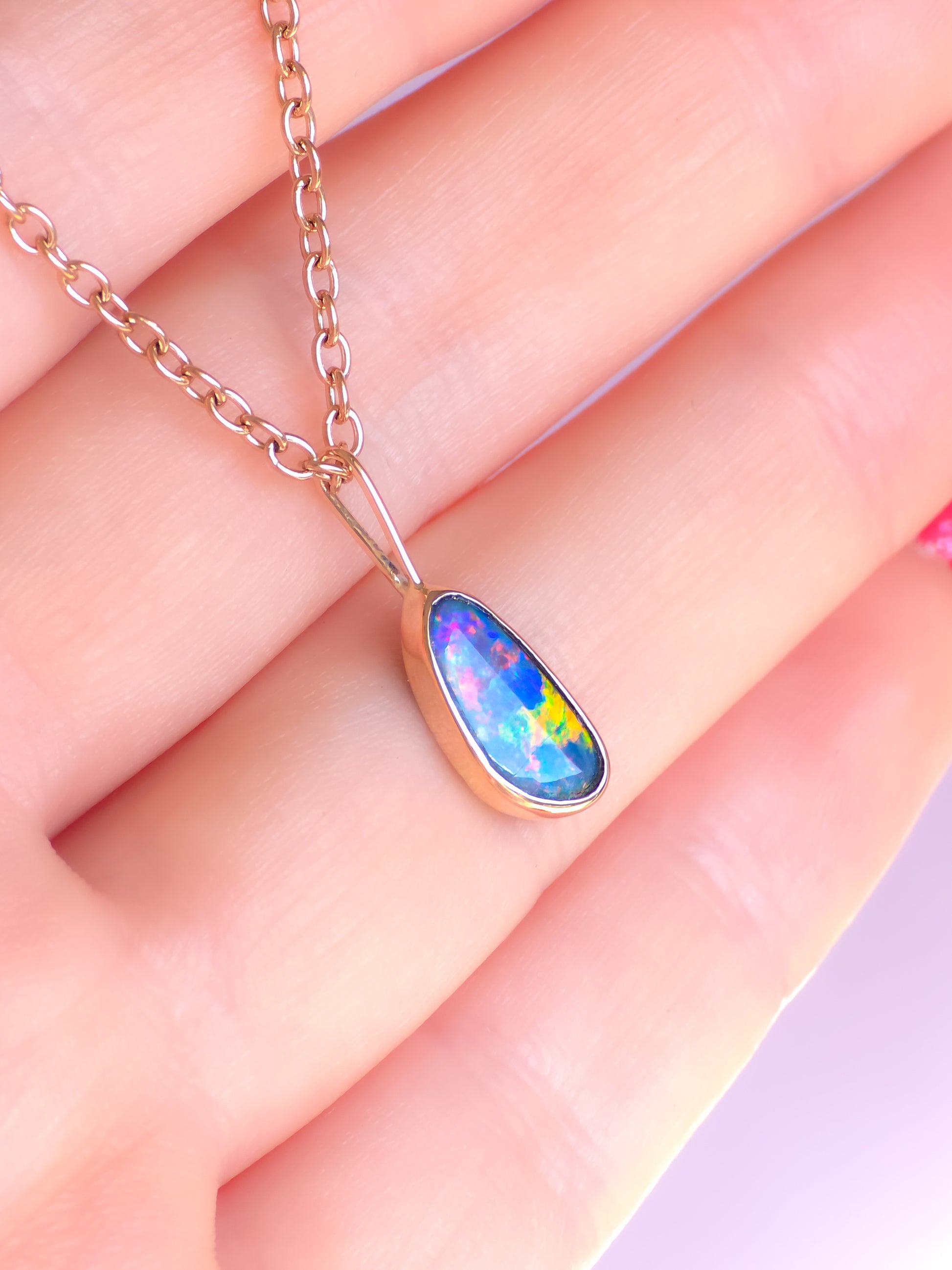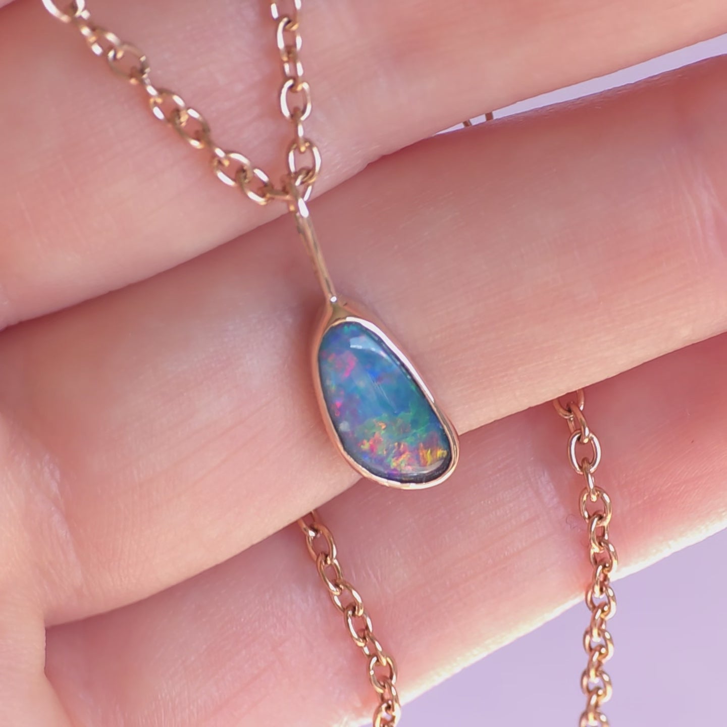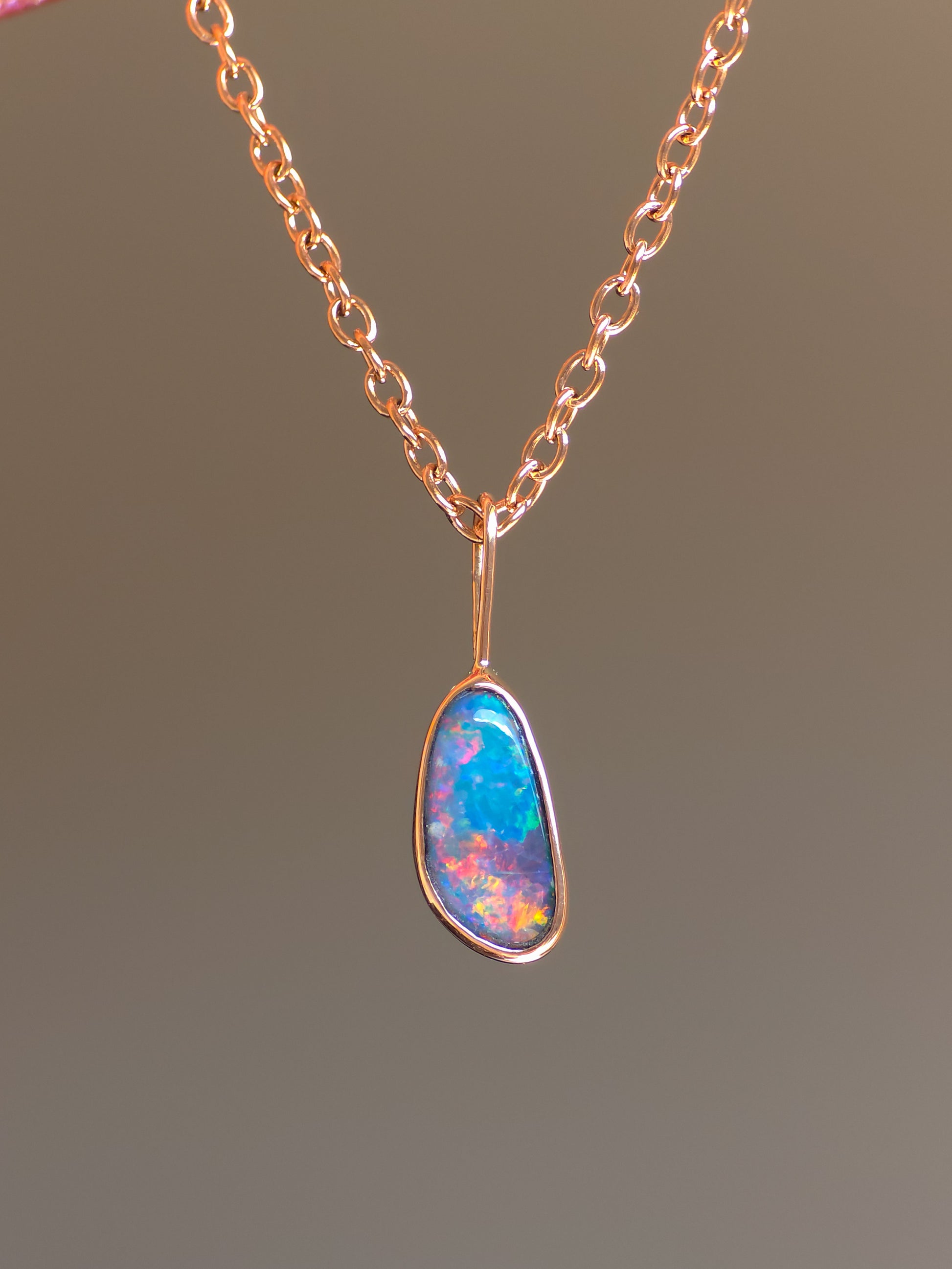 ROSE | 14K Rose Gold opal pendant / Australian opal / Coober Pedy opal / minimalist jewelry/ rainbow opal / Rose gold necklace