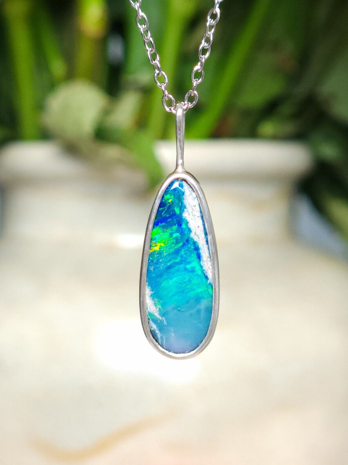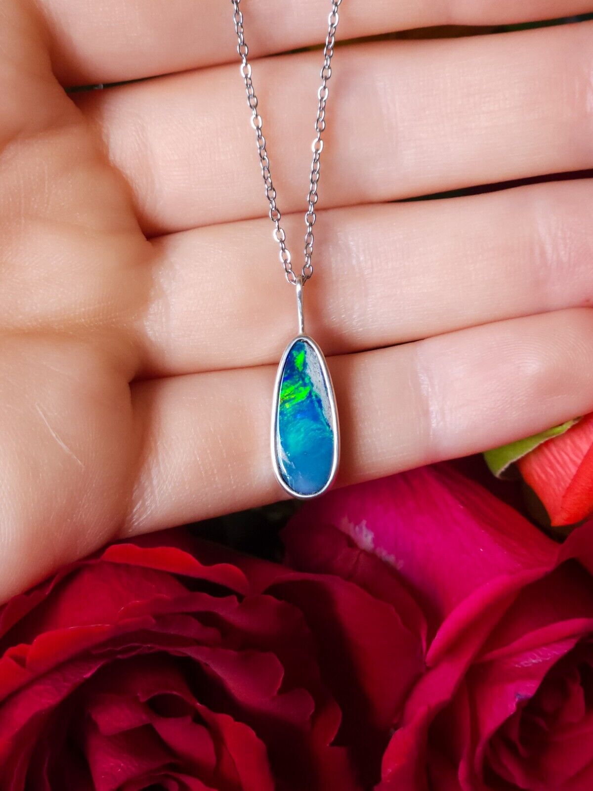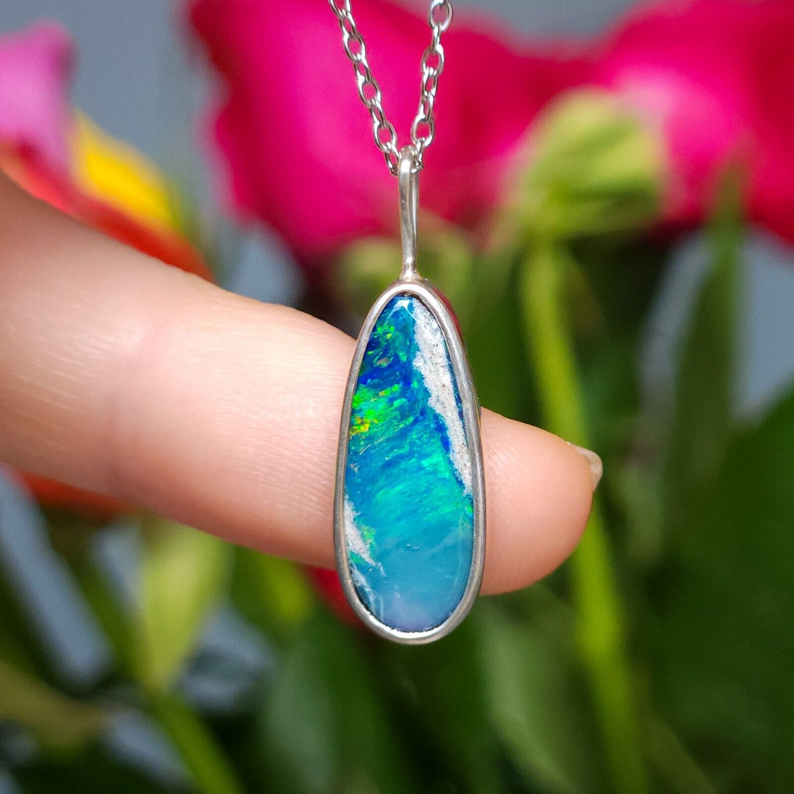 LUMINESCENCE | Australian opal necklace, 925 Silver, opal doublet, crystal opal / minimalist jewelry / coastal gemstone / charm pendant