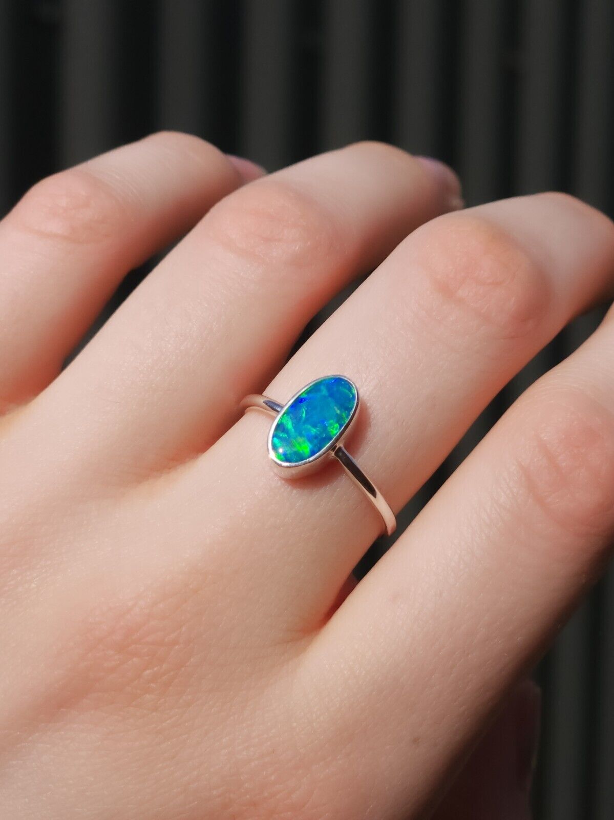 Silver Coober Pedy opal doublet ring / SIZE US 8 1/4, Green opal ring/ dainty ring/ Australian crystal opal ring/ minimalist/ flashy opal