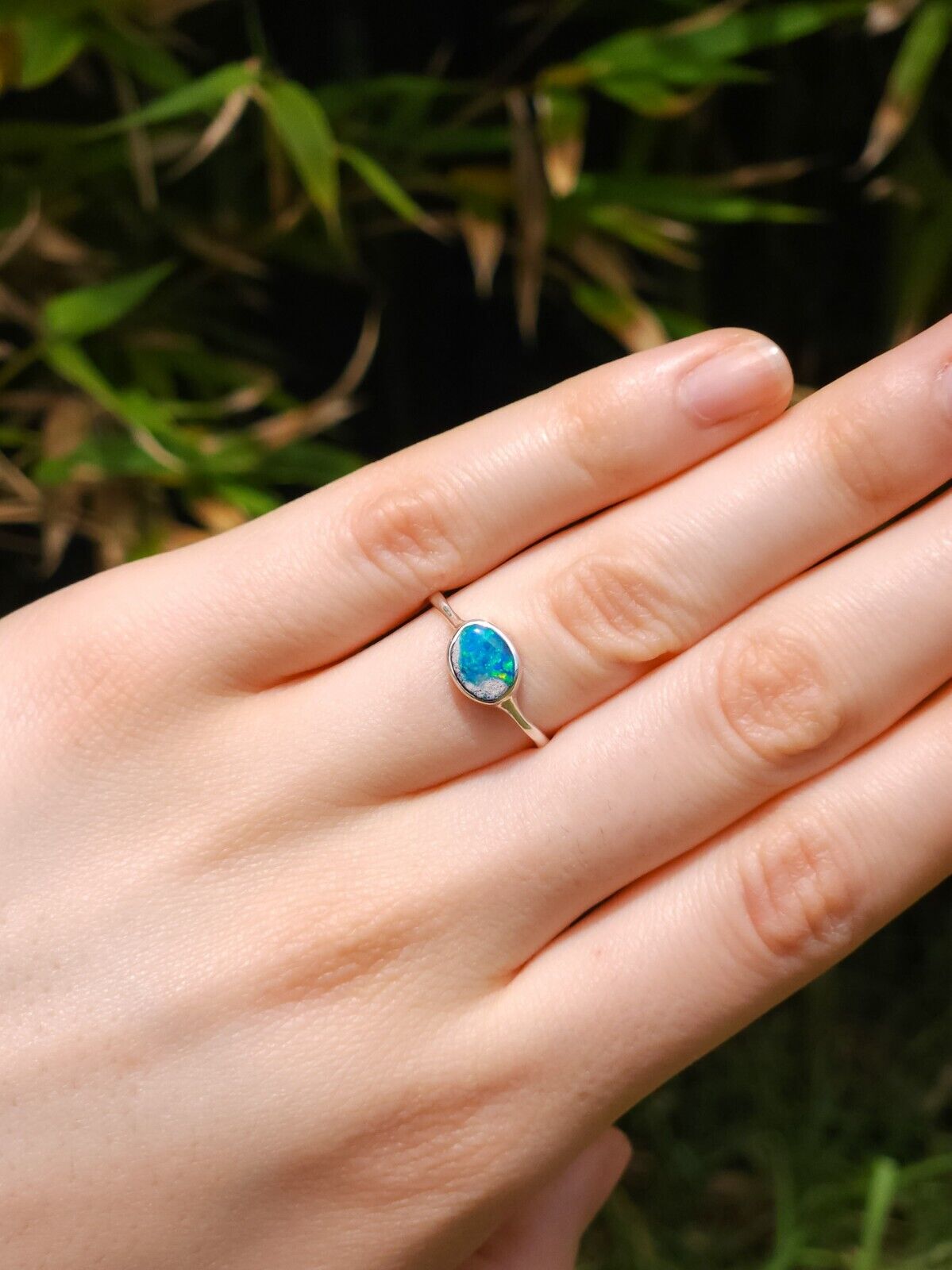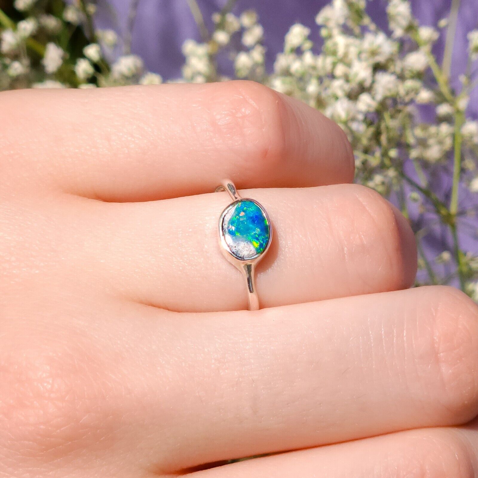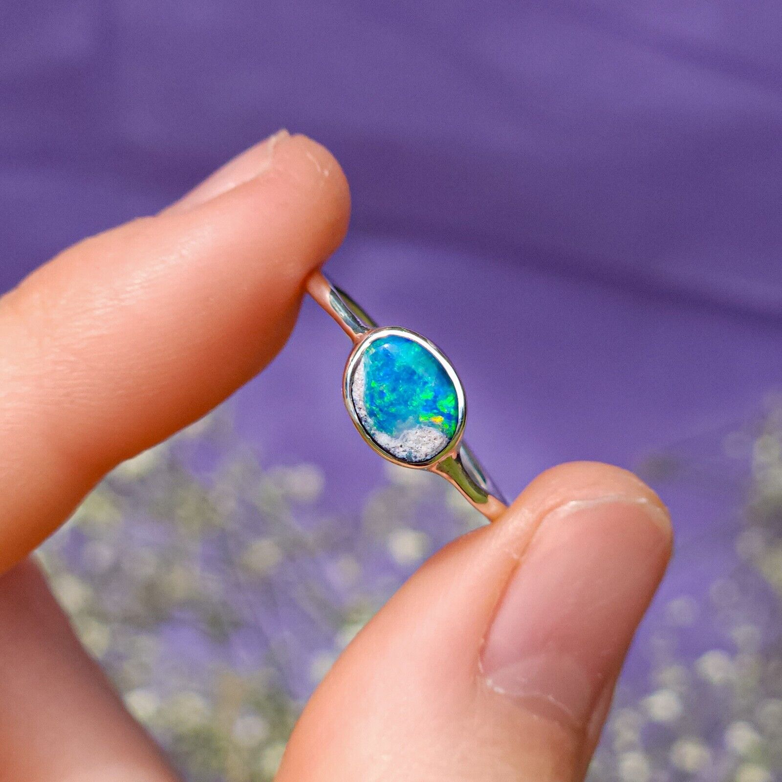 SKY | Coober Pedy opal ring / Size US 7 / Silver ring/ dainty ring/ crystal opal/ colorful gem/ minimalist jewelry