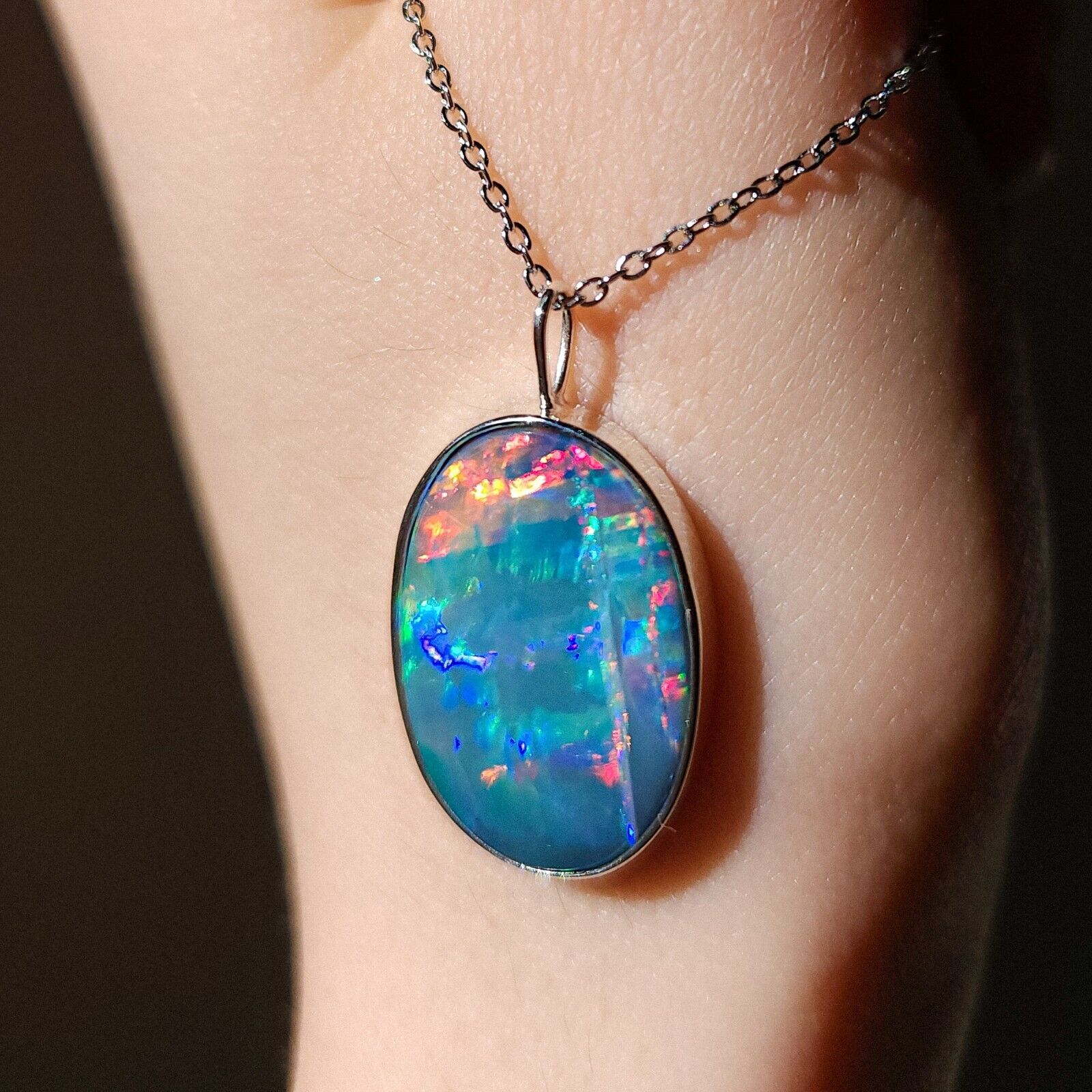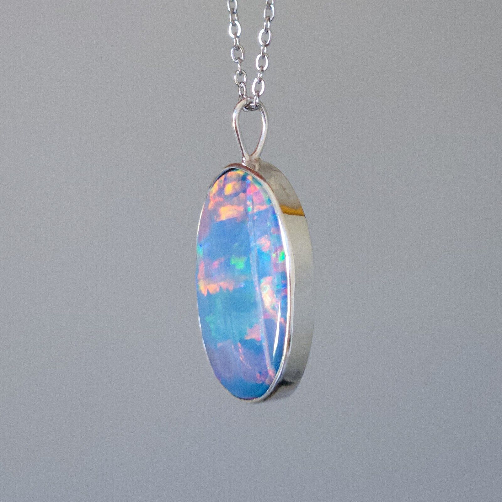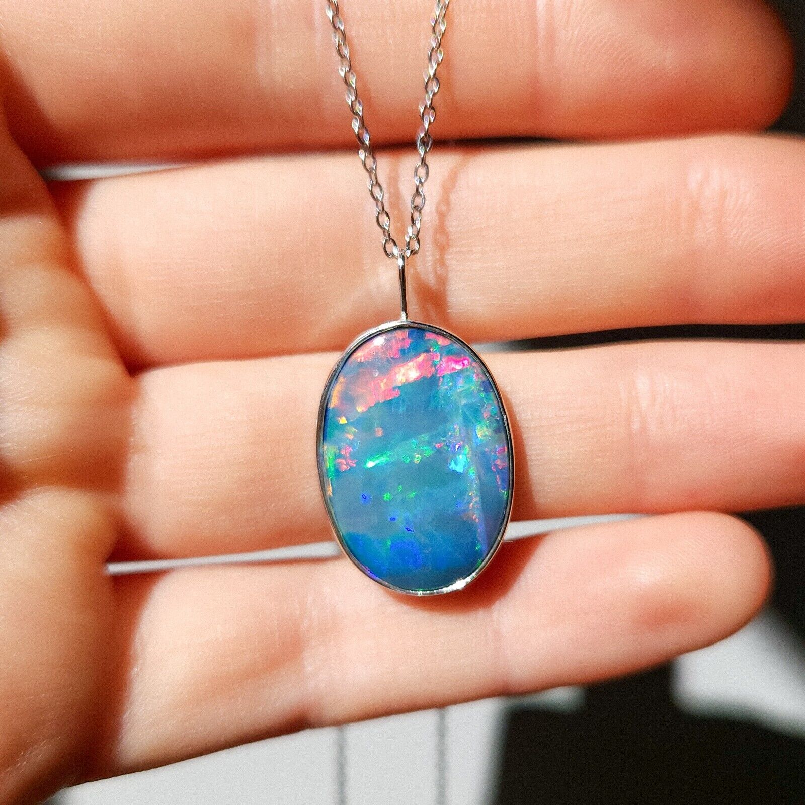 QUEEN | Australian opal necklace, Sterling Silver, opal doublet, crystal opal/ minimalist jewelry / rainbow gemstone / charm pendant