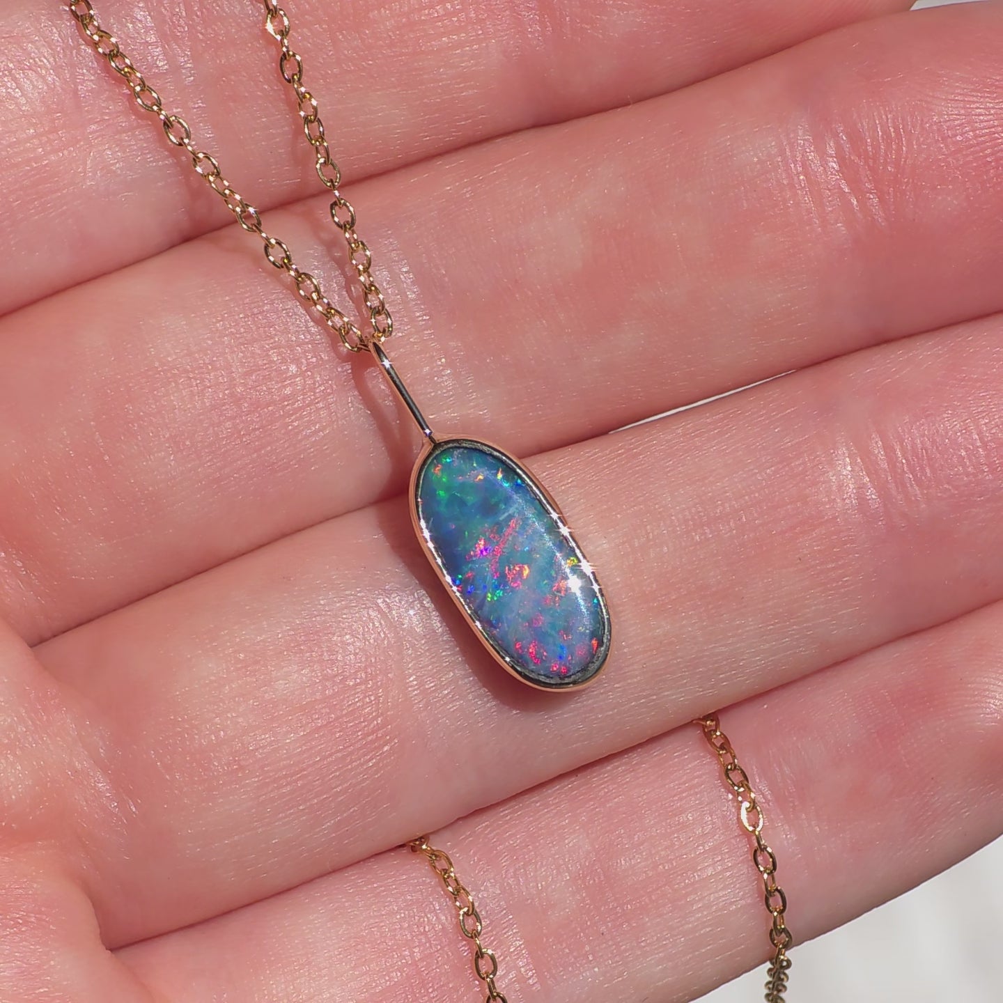 TULIP | 14K Gold Coober Pedy opal doublet necklace/ rainbow crystal opal/ minimalist jewelry